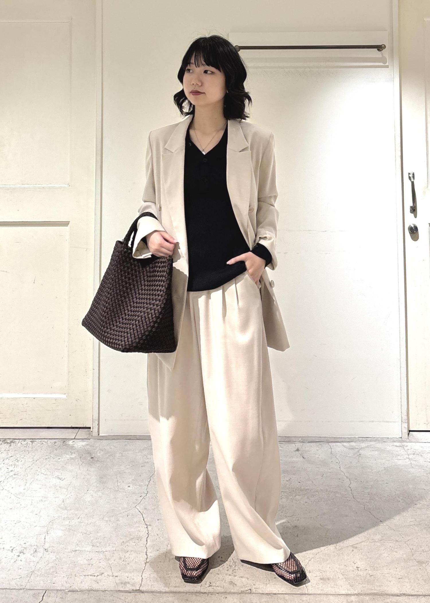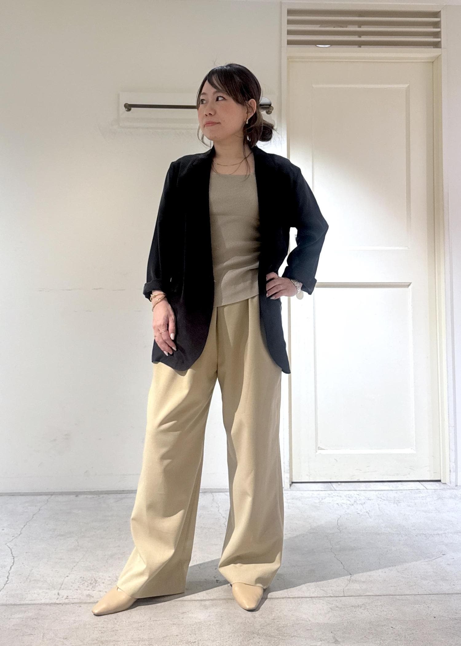 ワイドパンツと合わせて、ボタンを開けてすっきり