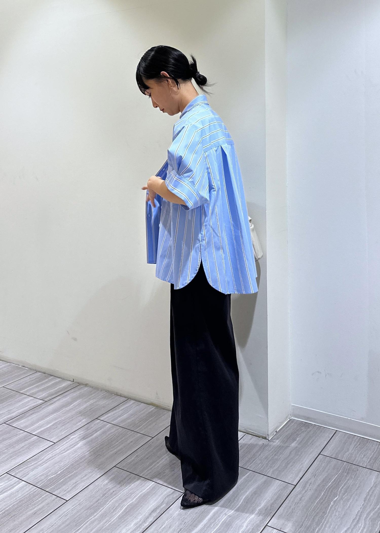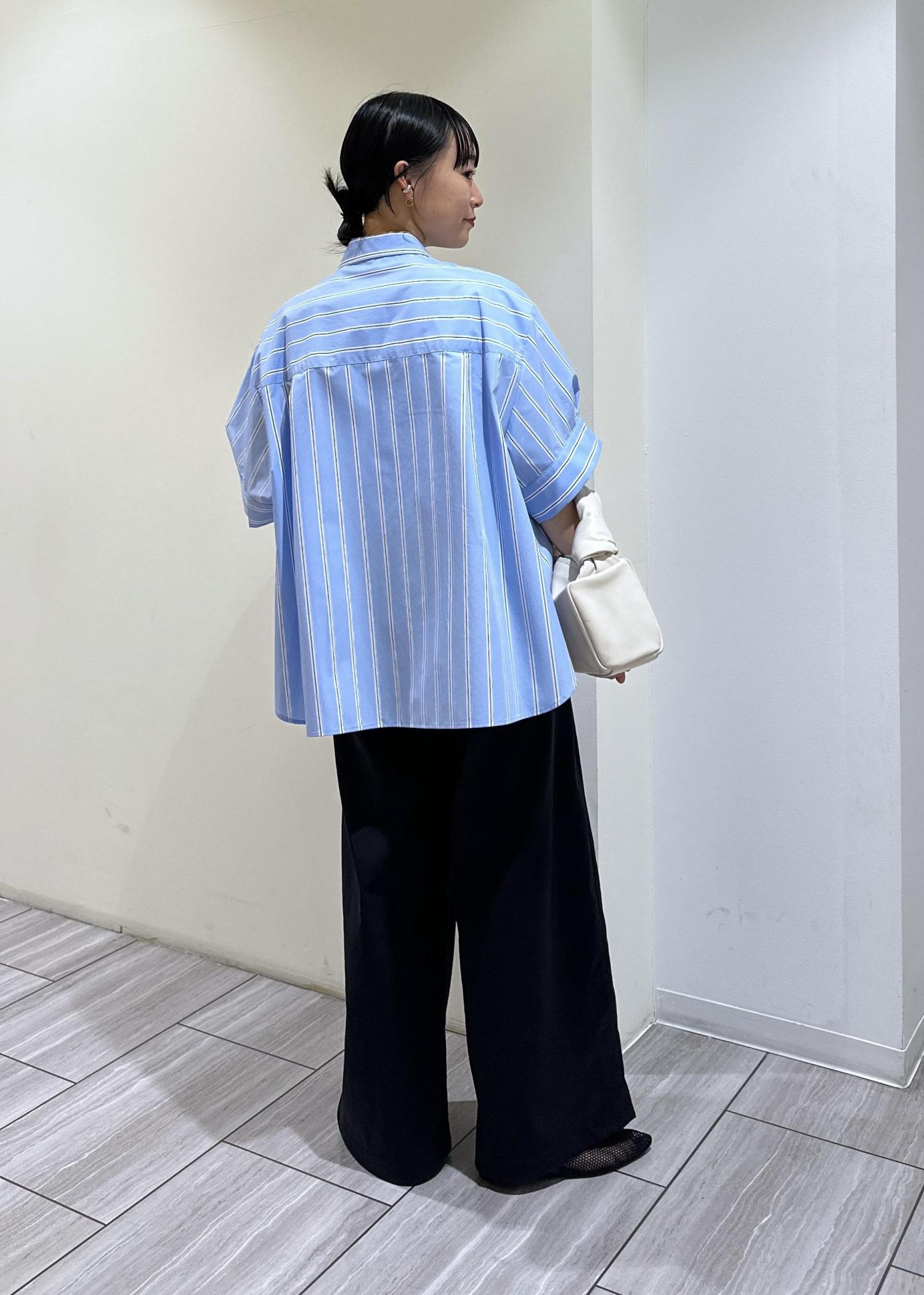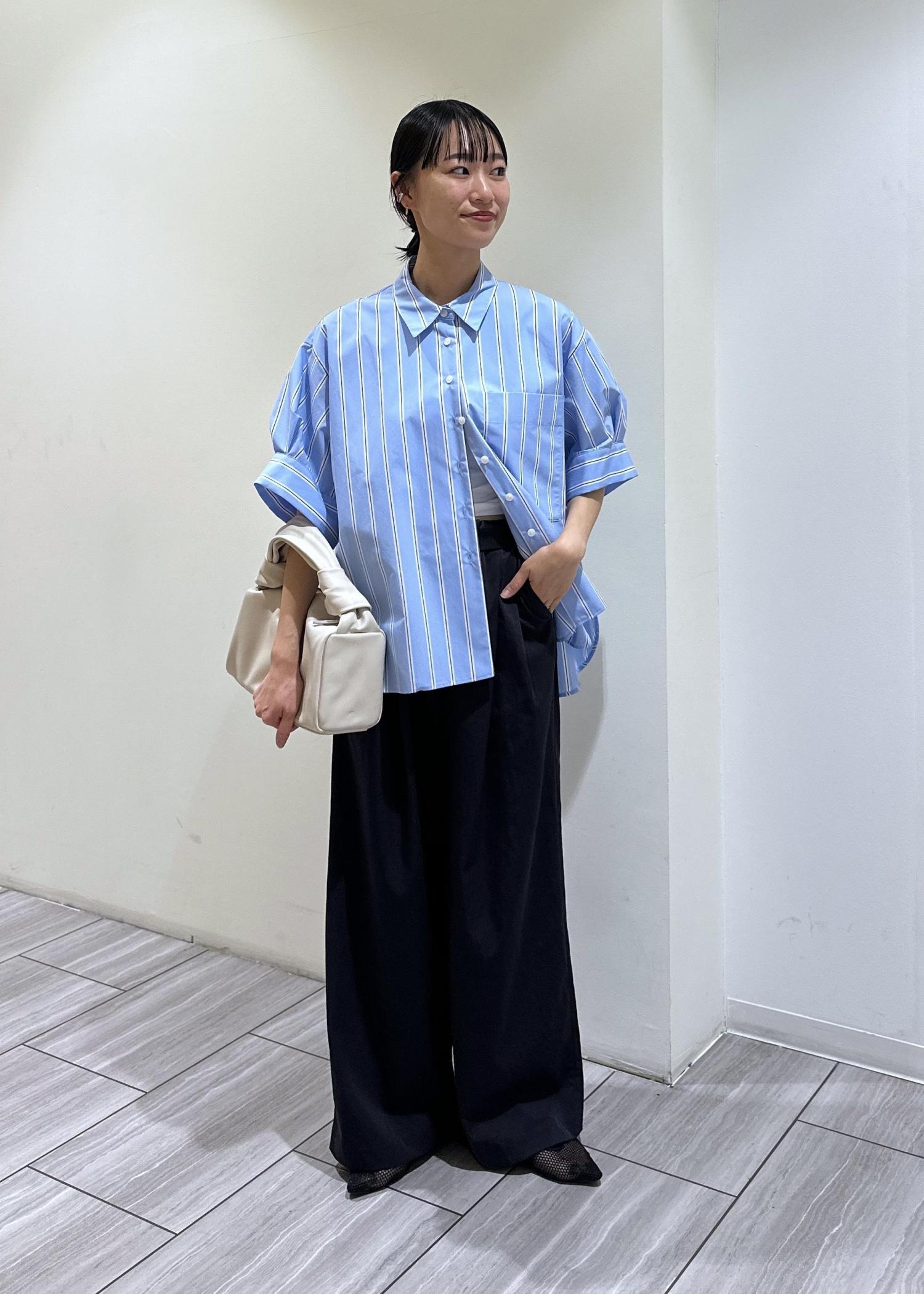 アウトレットADAM ET ROPÉ FEMME【サステナブル】バウンスカフステントラインシャツブルー系 / F¥7,568レビューお尻までの丈感のシャツ。サラッとした素材ですが、ハリがある為綺麗めにも着用可能◯!デニム合わせでカジュアルにも◯ですが、夏はワンピースの羽織りに最適!