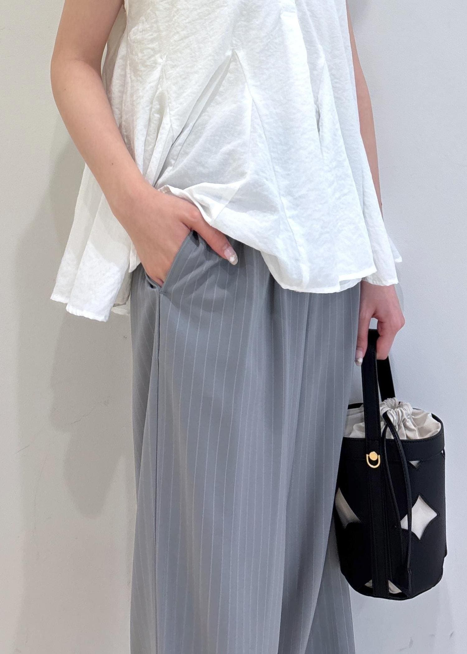 アウトレットVIS【接触冷感/UVケア】ピンストライプリラックスワイドパンツグレー / M¥2,636レビューさらっとしていて、ウエストゴムなので履き心地楽でした。163センチで足首隠れるちょうど良い丈感でした。