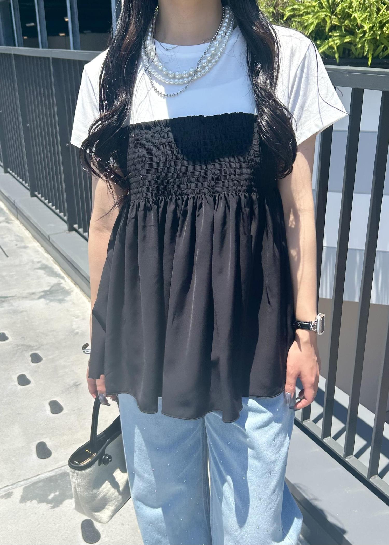 ROPÉ PICNICシャーリングビスチェ風ドッキングカットソーブラック系 / 38¥3,599レビューふんわりしたペプラムシルエットなので、着膨れが心配でしたが、落ち感のある滑らかな素材感で大きく見えず◎