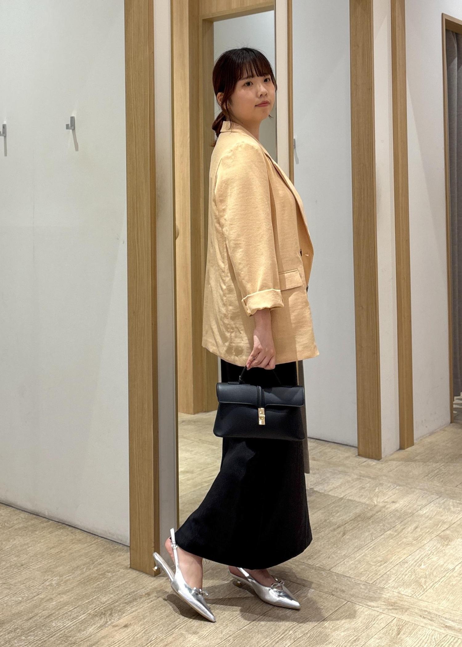 きれいめな印象を保ちつつも、抜け感のあるジャケットの着こなしやシルバーの小物使いで今っぽさも忘れずに。