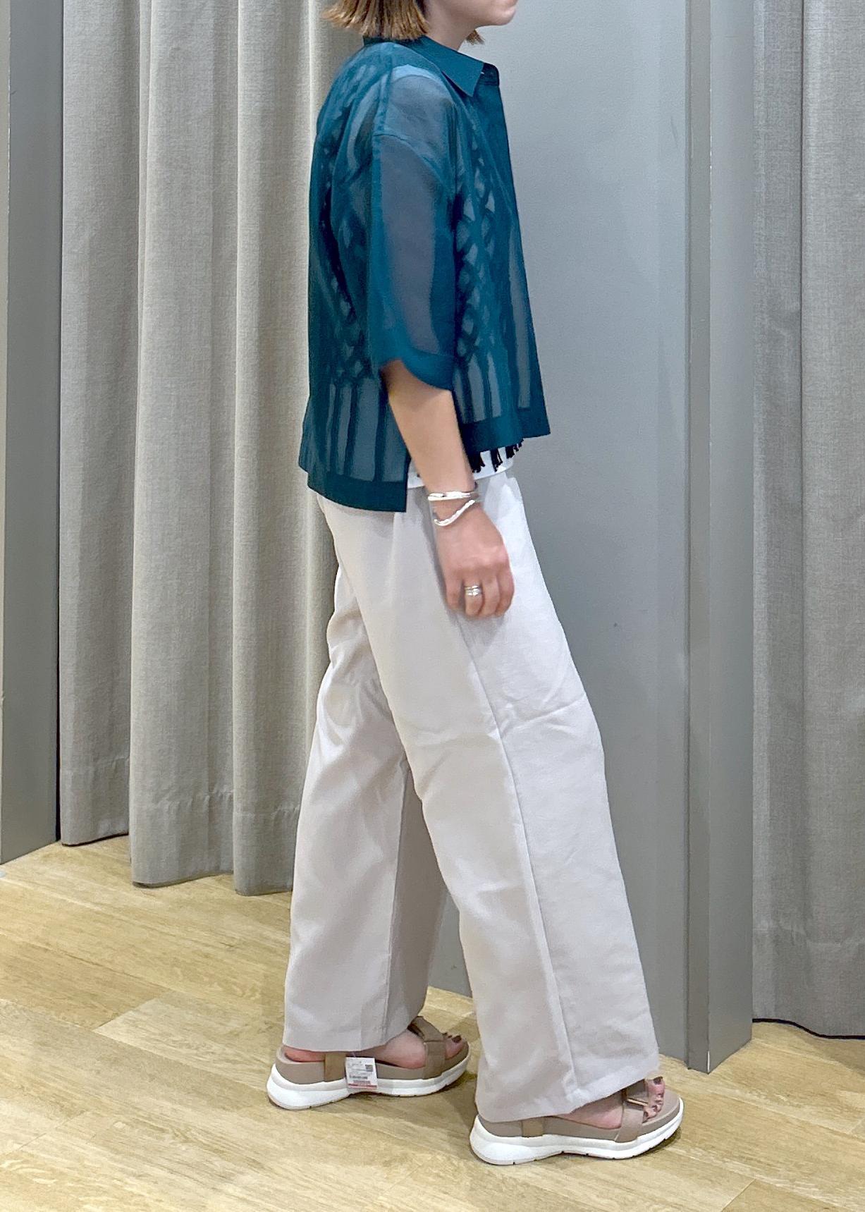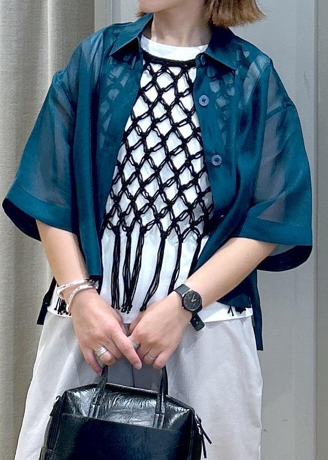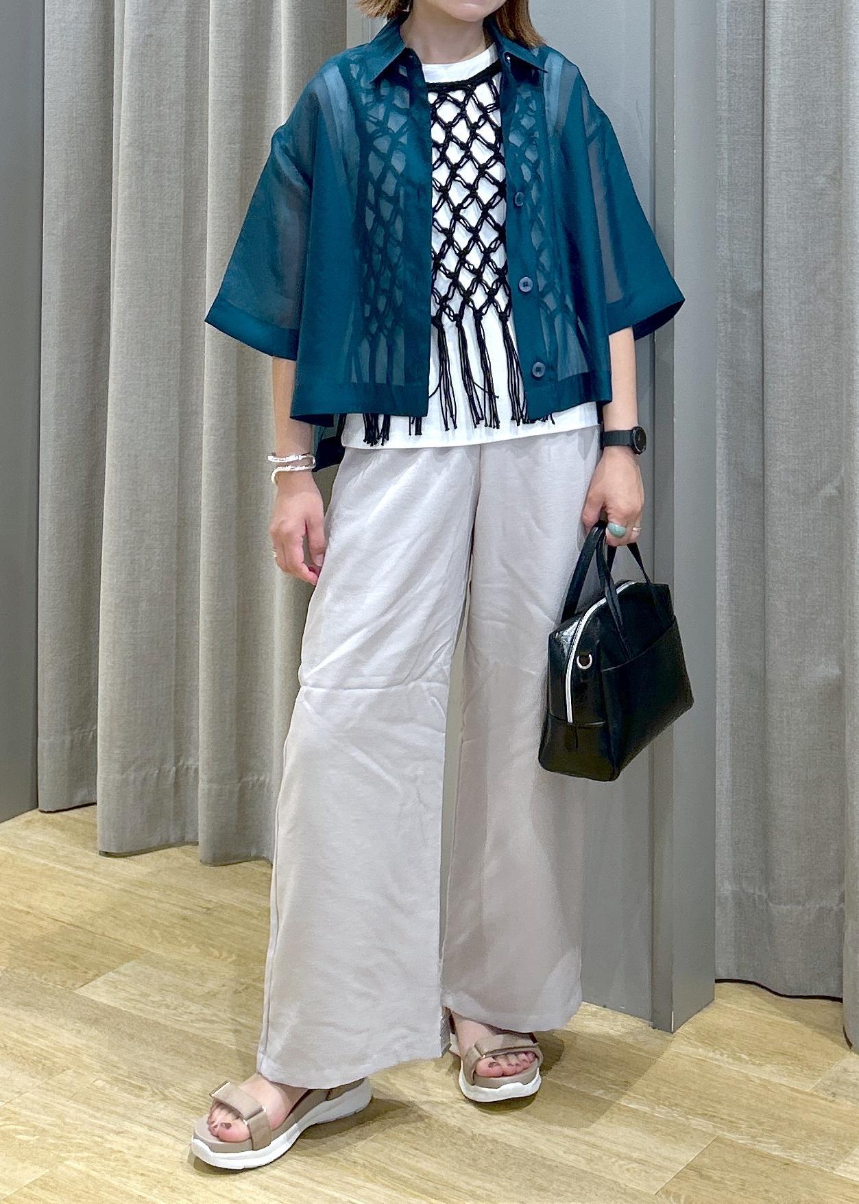 カラーのシャツもシアー素材なら挑戦しやすいですよ!