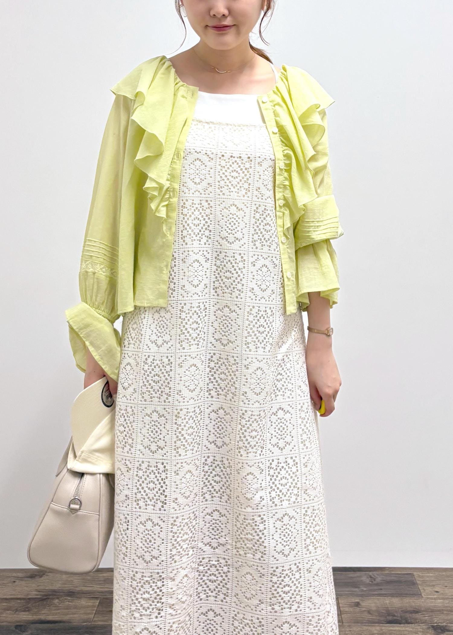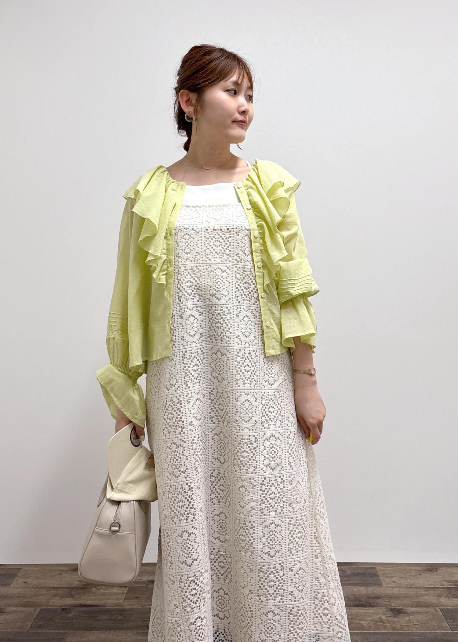 アウトレットROPÉ PICNIC【接触冷感・通気性】お着軽シャツシリーズ/綿ボイルフリルブラウスイエロー / 38¥4,391レビュー短丈のフリルブラウスです。