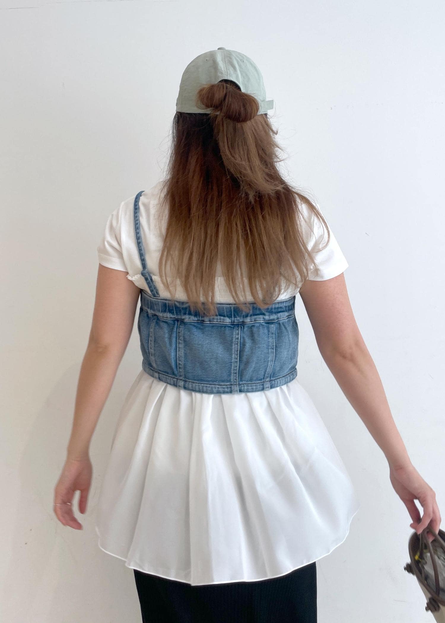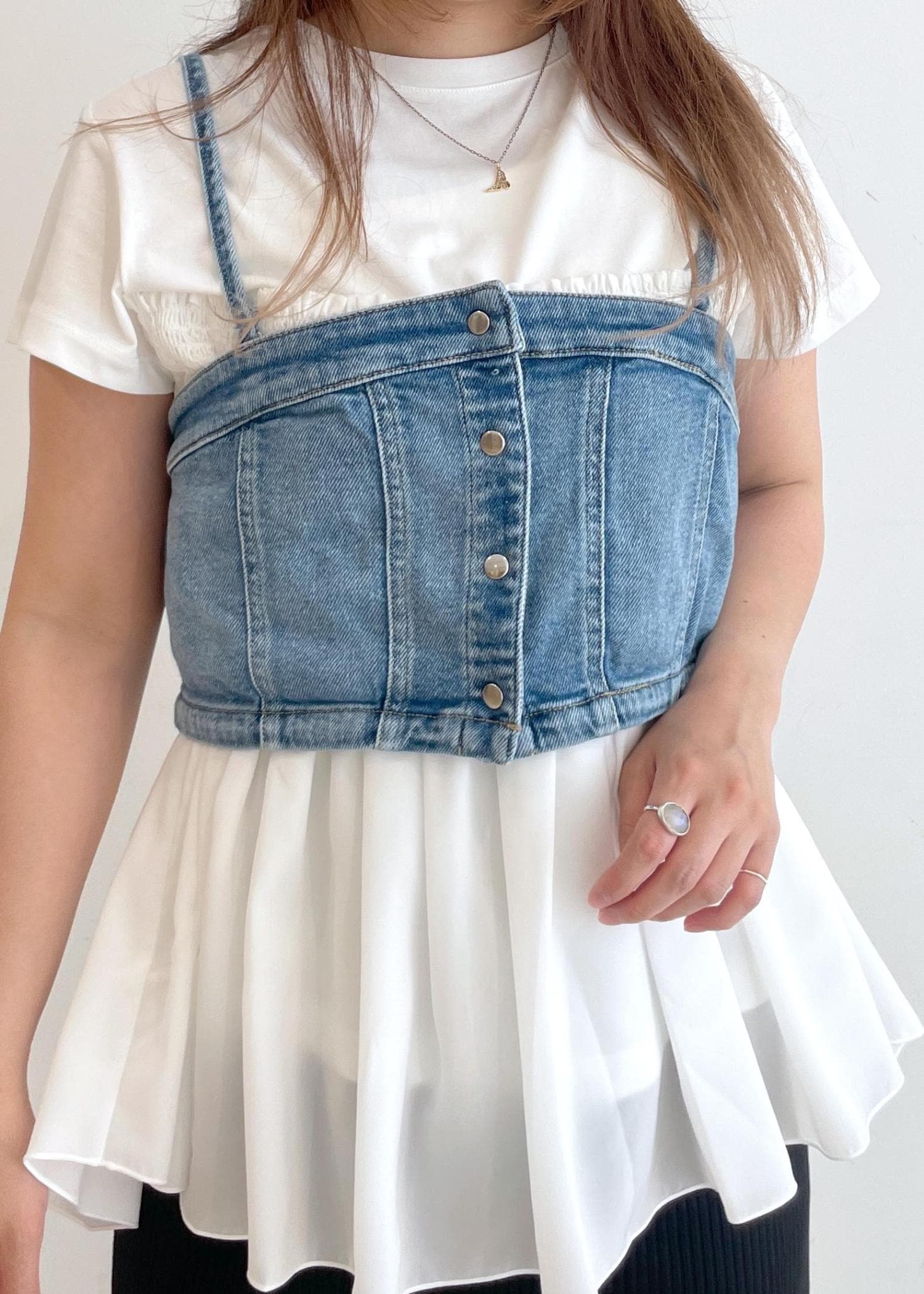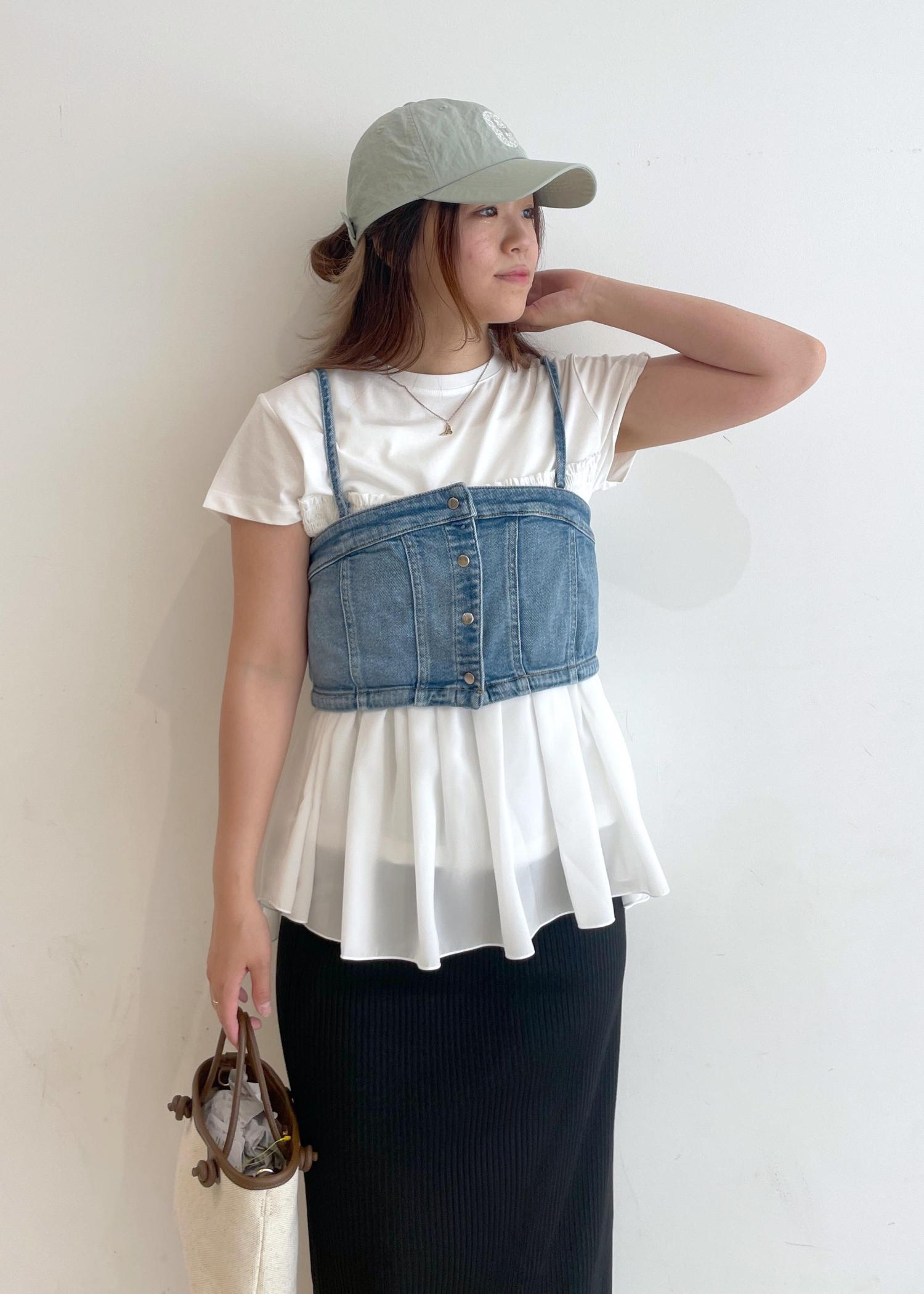 ROPÉ PICNICシャーリングビスチェ風ドッキングカットソーホワイト / 38¥3,599レビューTシャツにビスチェを組み合わせたように着れるトップスなので1枚で華やかに着れます◎