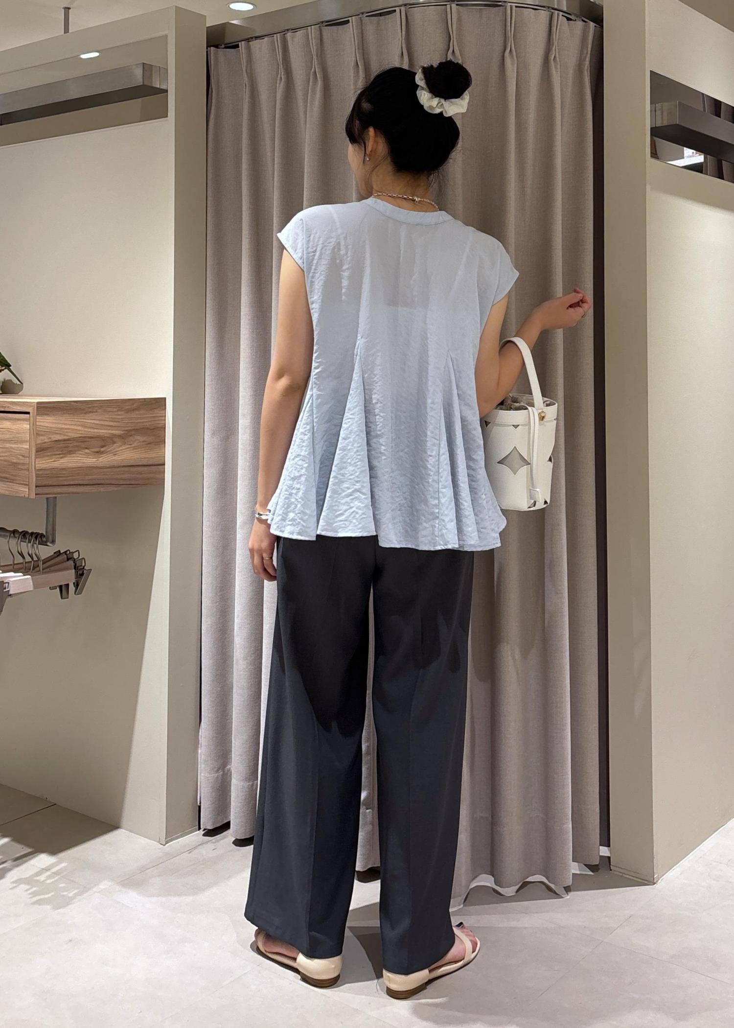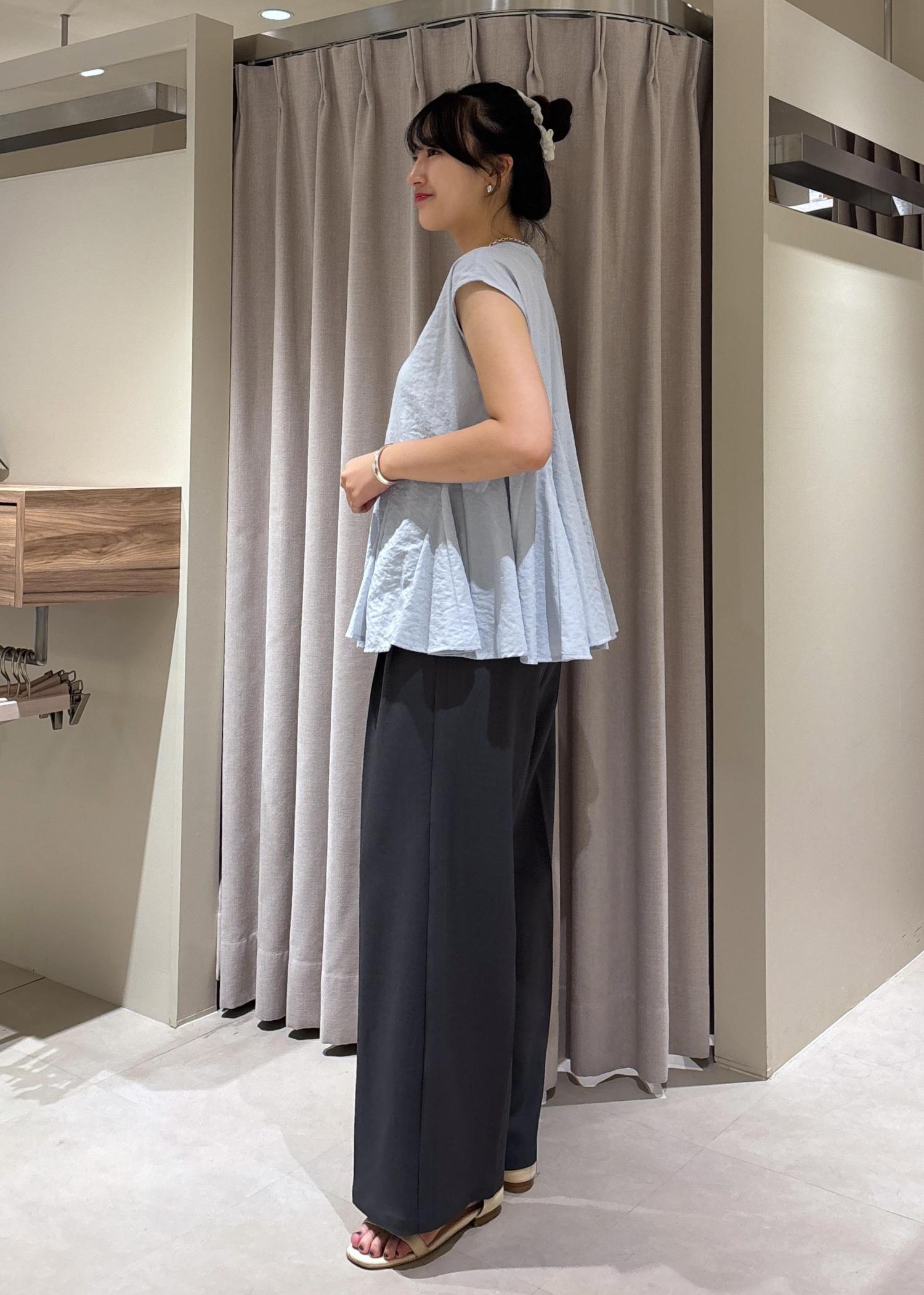 ゆったりしたサイズ感とフレンチスリーブで二の腕や腰回りのカバーが出来、安心感があります!