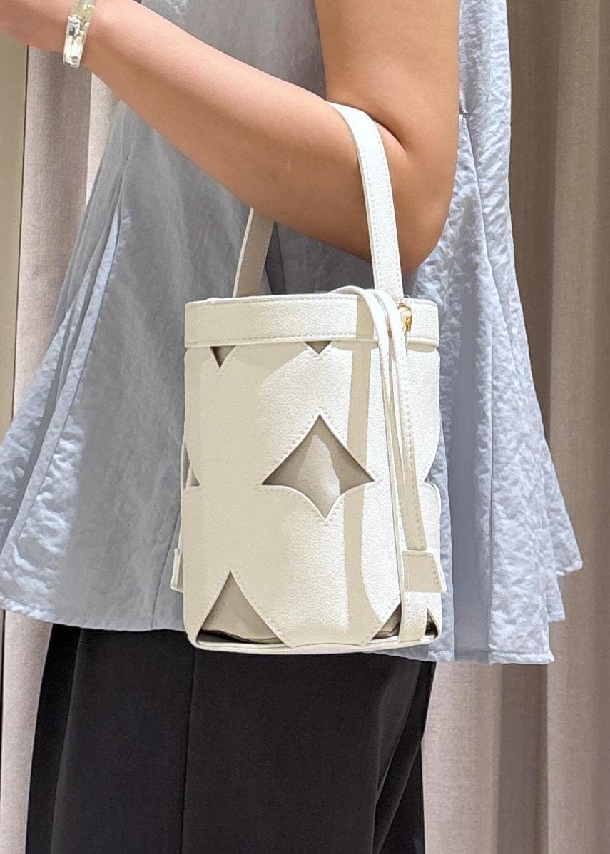 アウトレットVISカットワーク2WAYバッグホワイト系 / F¥4,843レビューマチがしっかりあり、500mlのペットボトルや長財布も収納可能です!