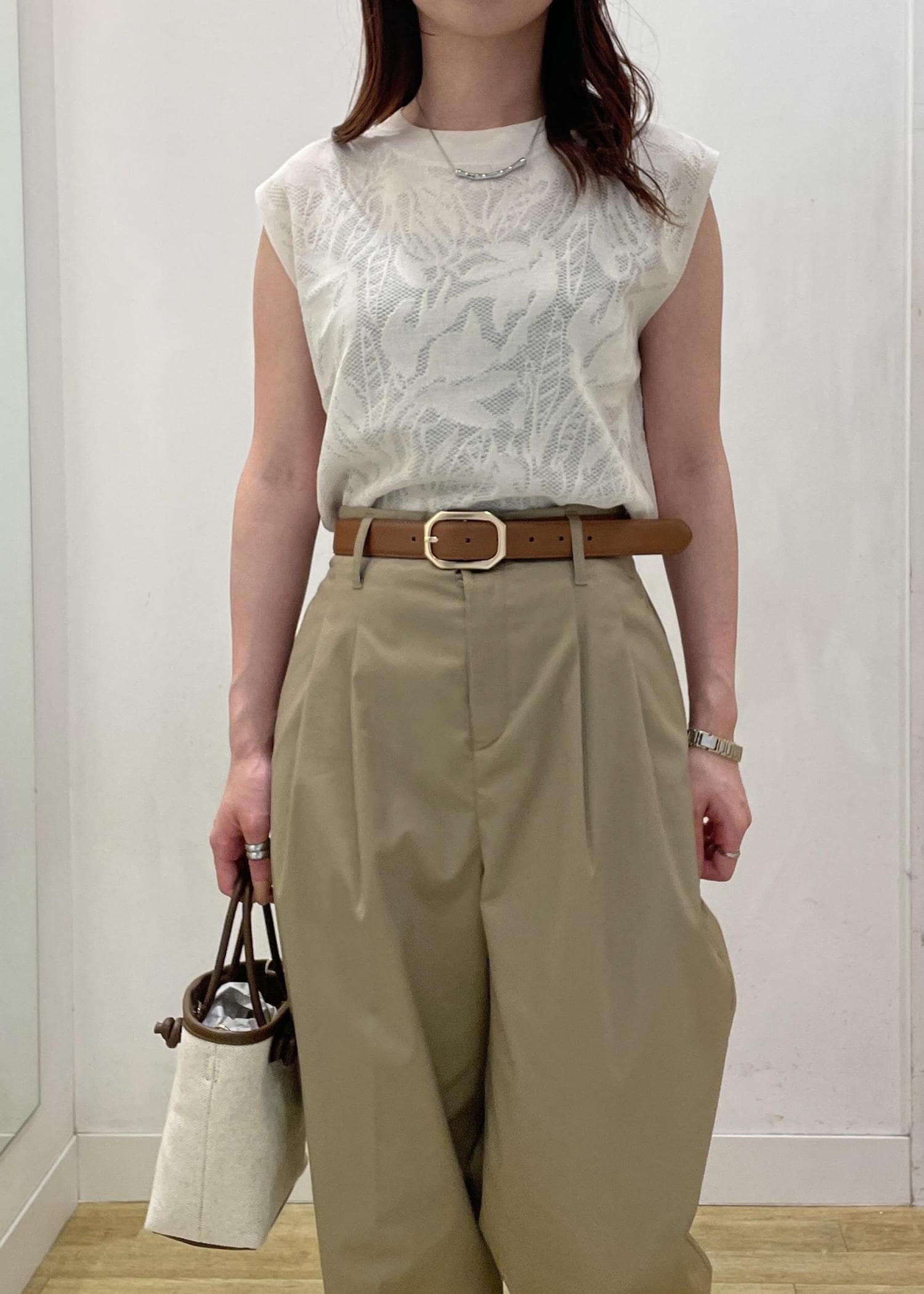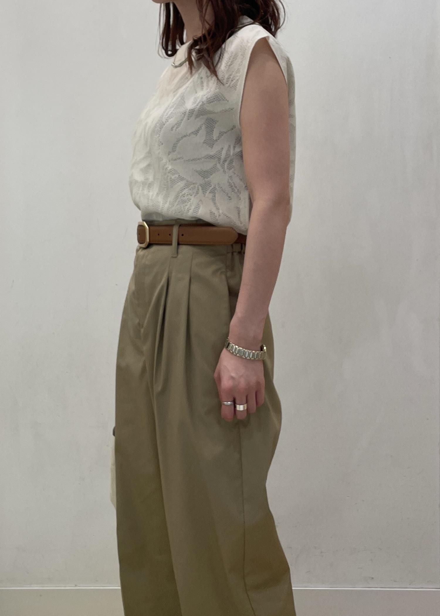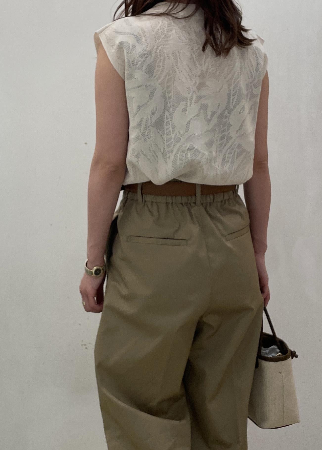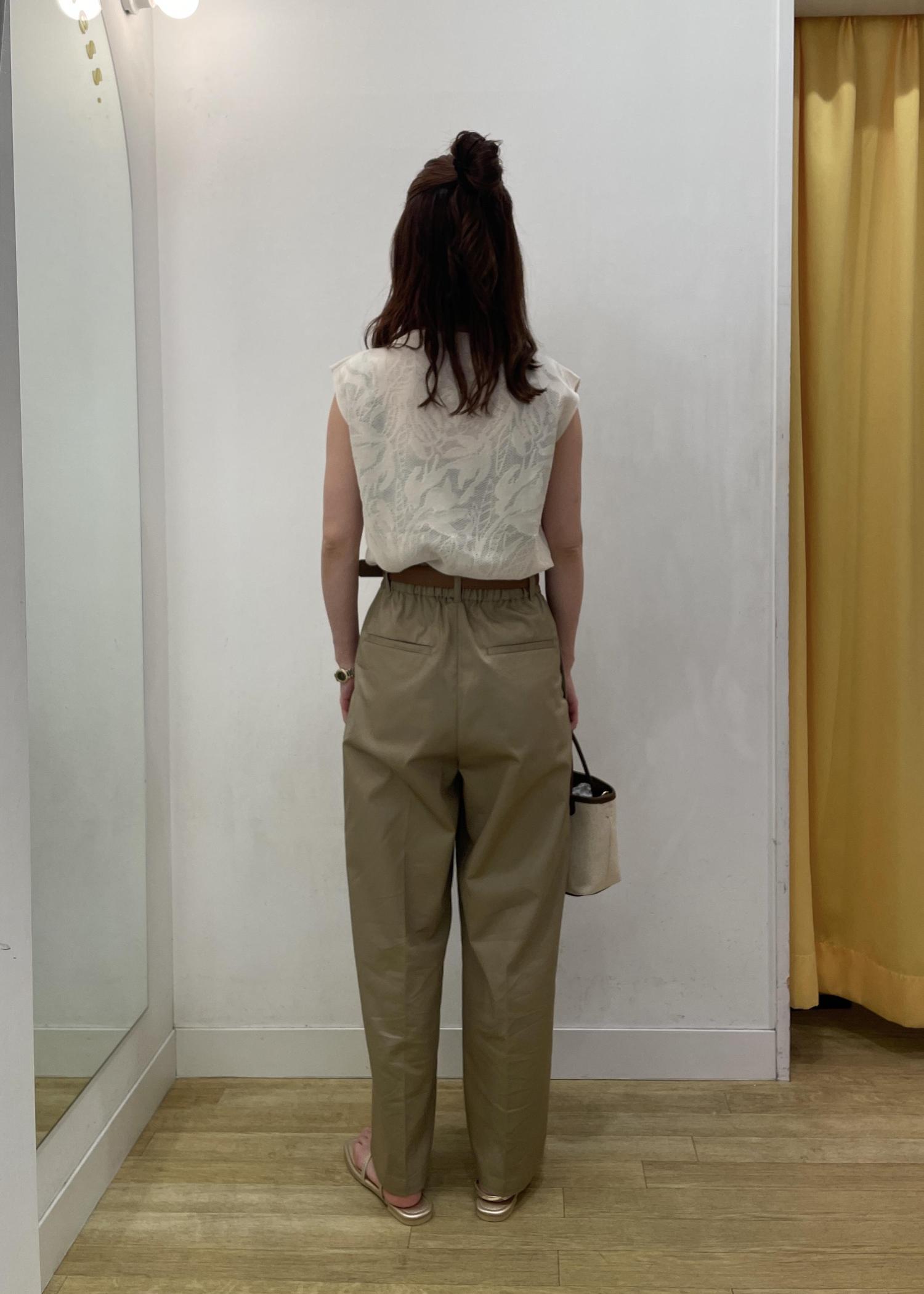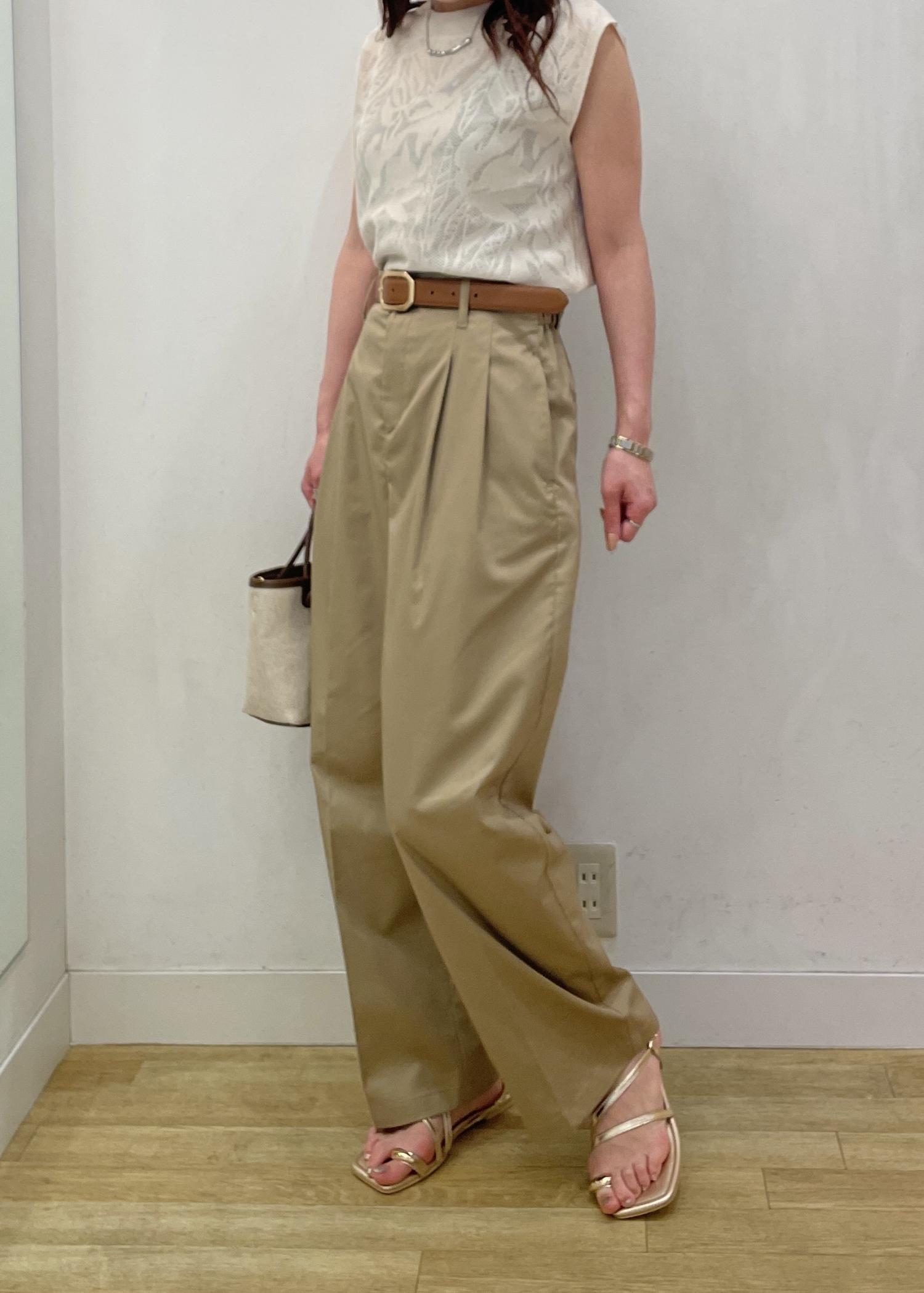 ほんのり透け感のある女性らしいトップスにチノパンツを合わせました☺︎