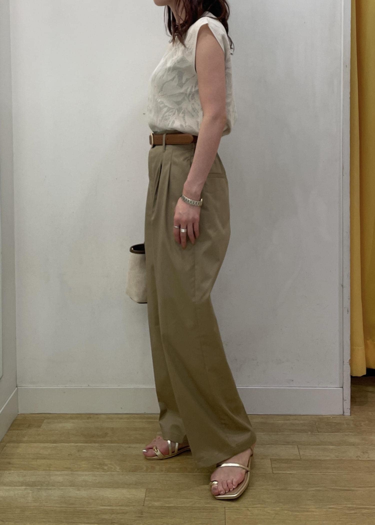 パンツスタイルで合わせることでヘルシーなコーディネートになるのでオススメです。