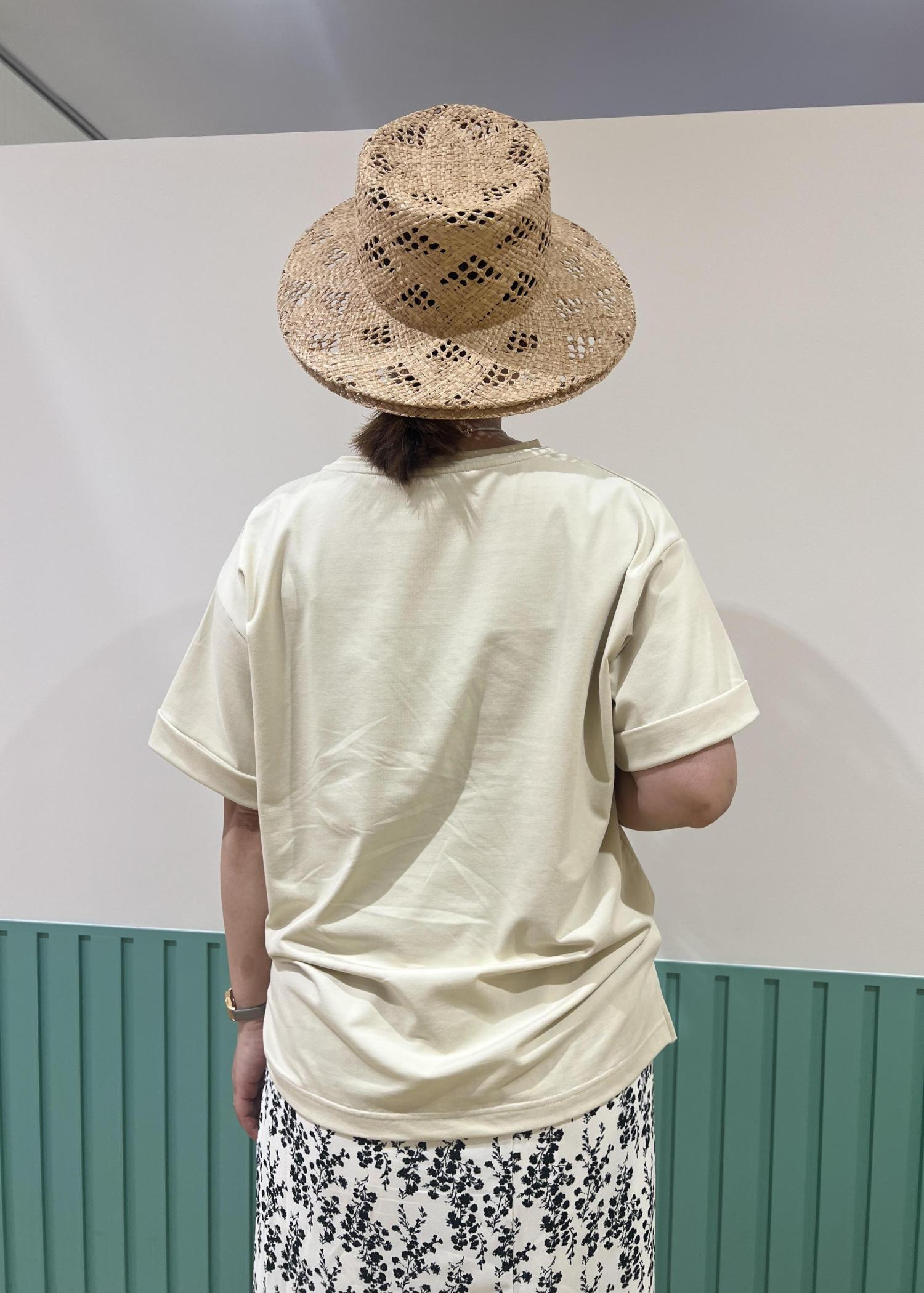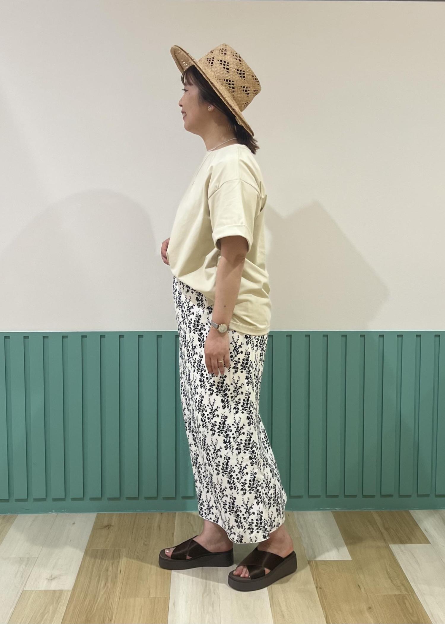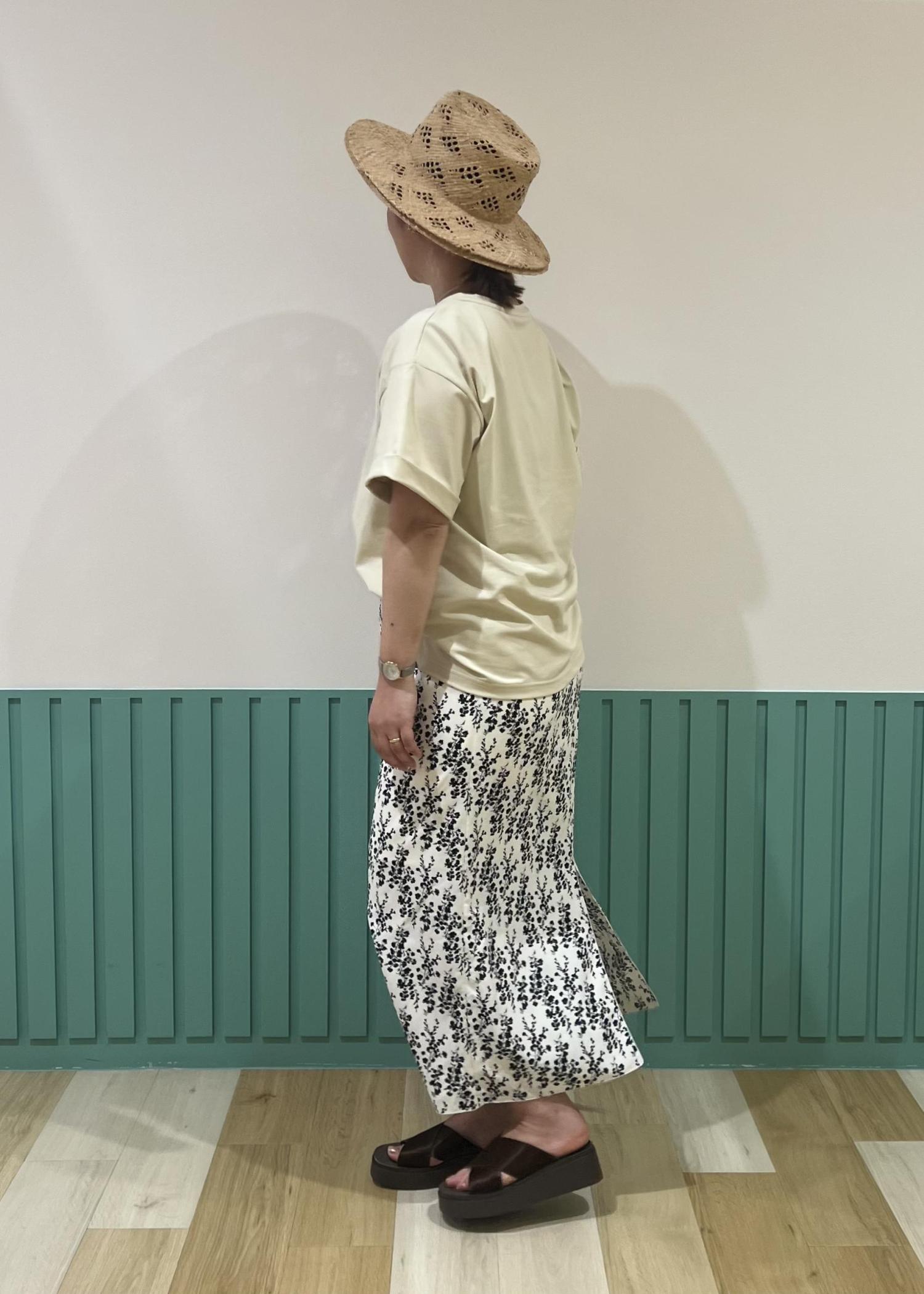 夏のストレスを最大限にカバーしてくれるマルチファンクションシリーズ。新色のクリームのカラーをメインに花柄スカートとコーデし暑い夏も楽しめるスタイリングに仕上げました。