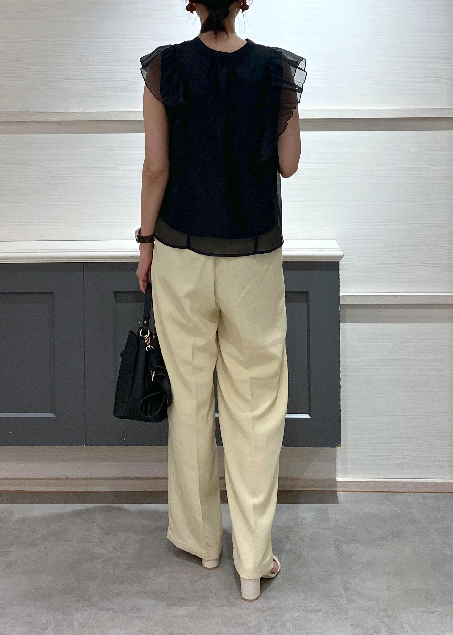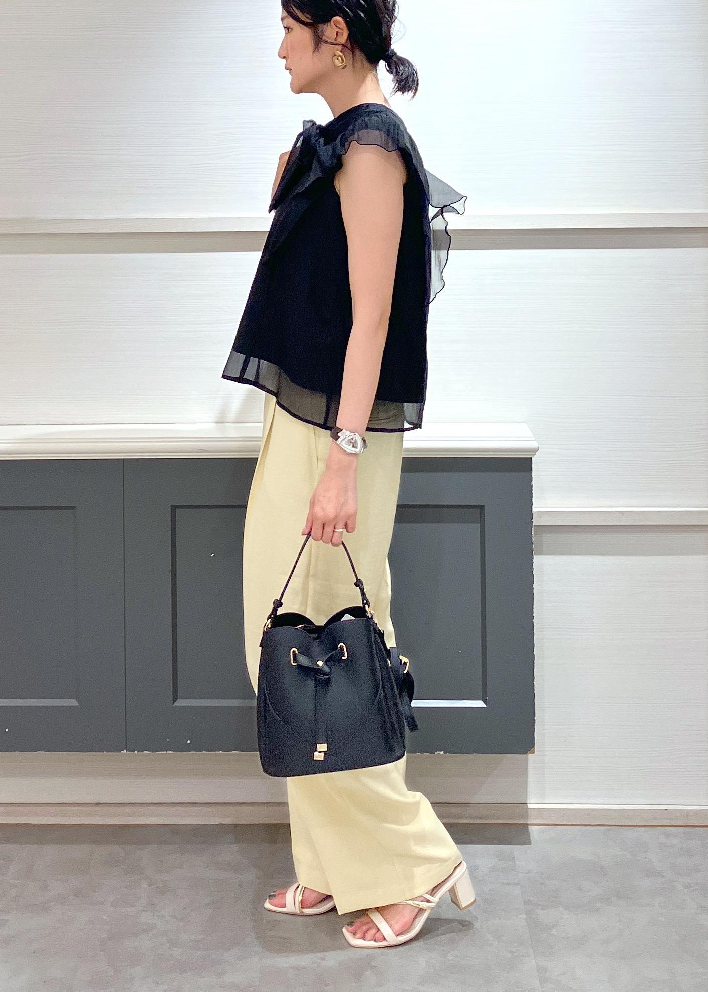 ブラック×イエローの組み合わせでフェミニンに見えるブラウスをカッコ良い印象にしました!