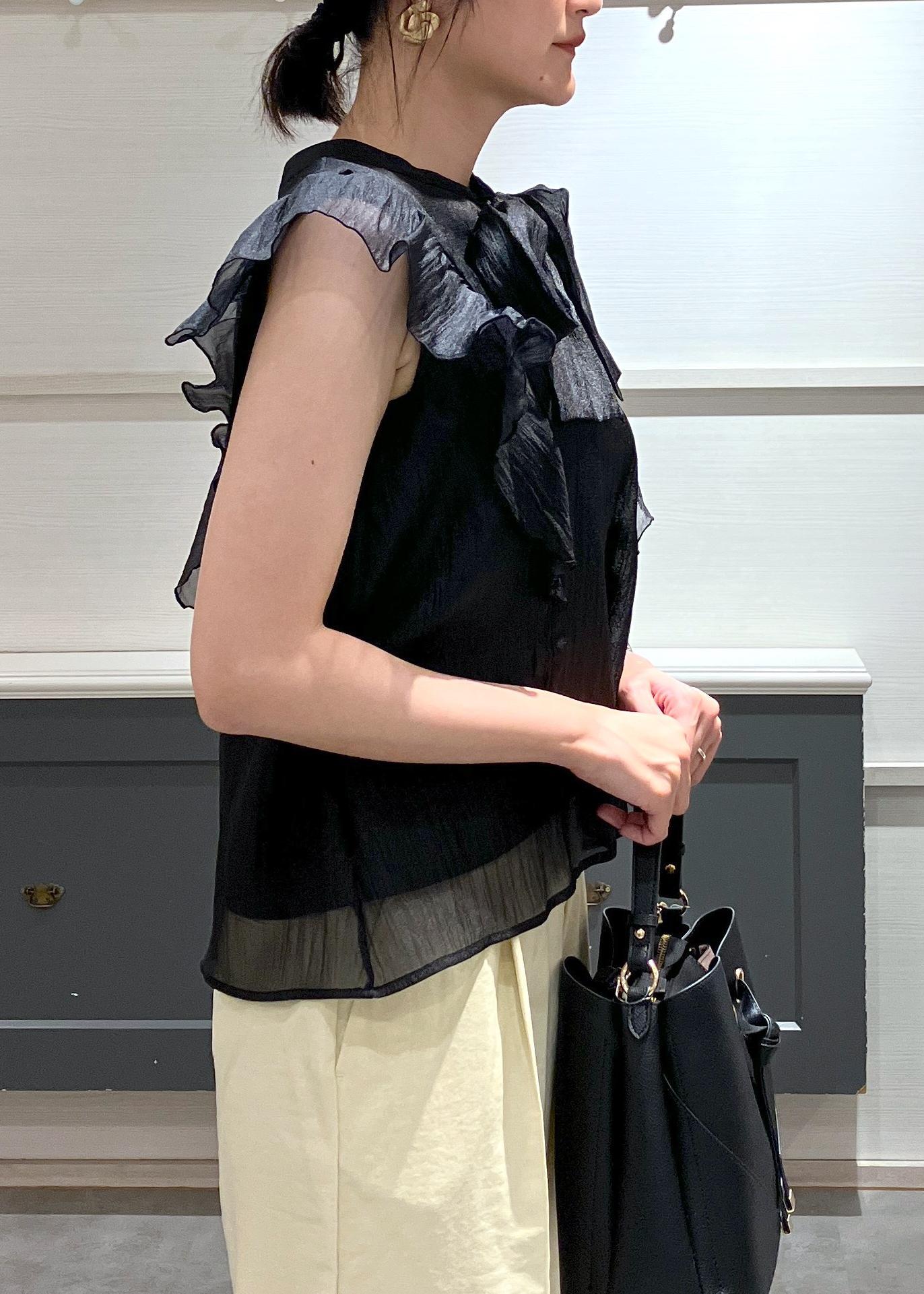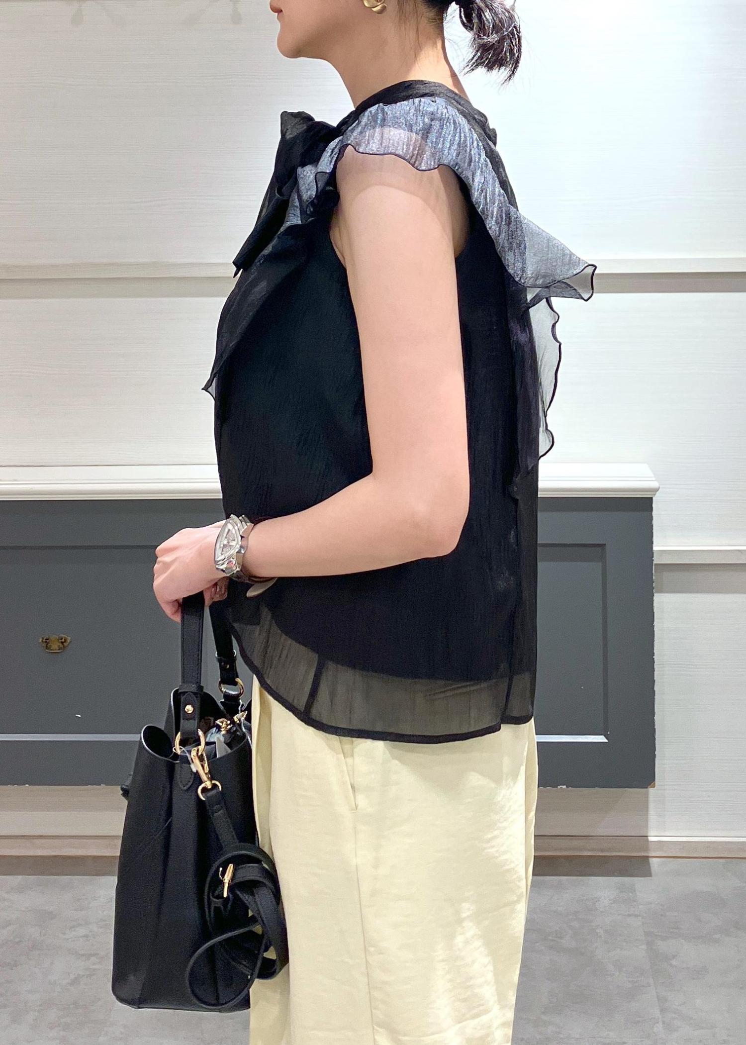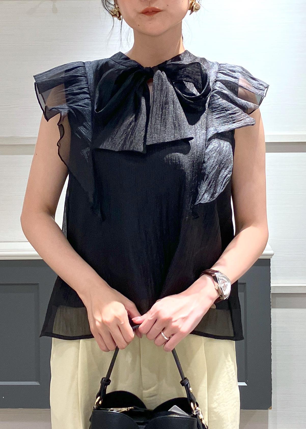 【店頭人気】主役級!華やぎシアーシャイニーボウタイフリルブラウス【前後2WAY】【洗える】