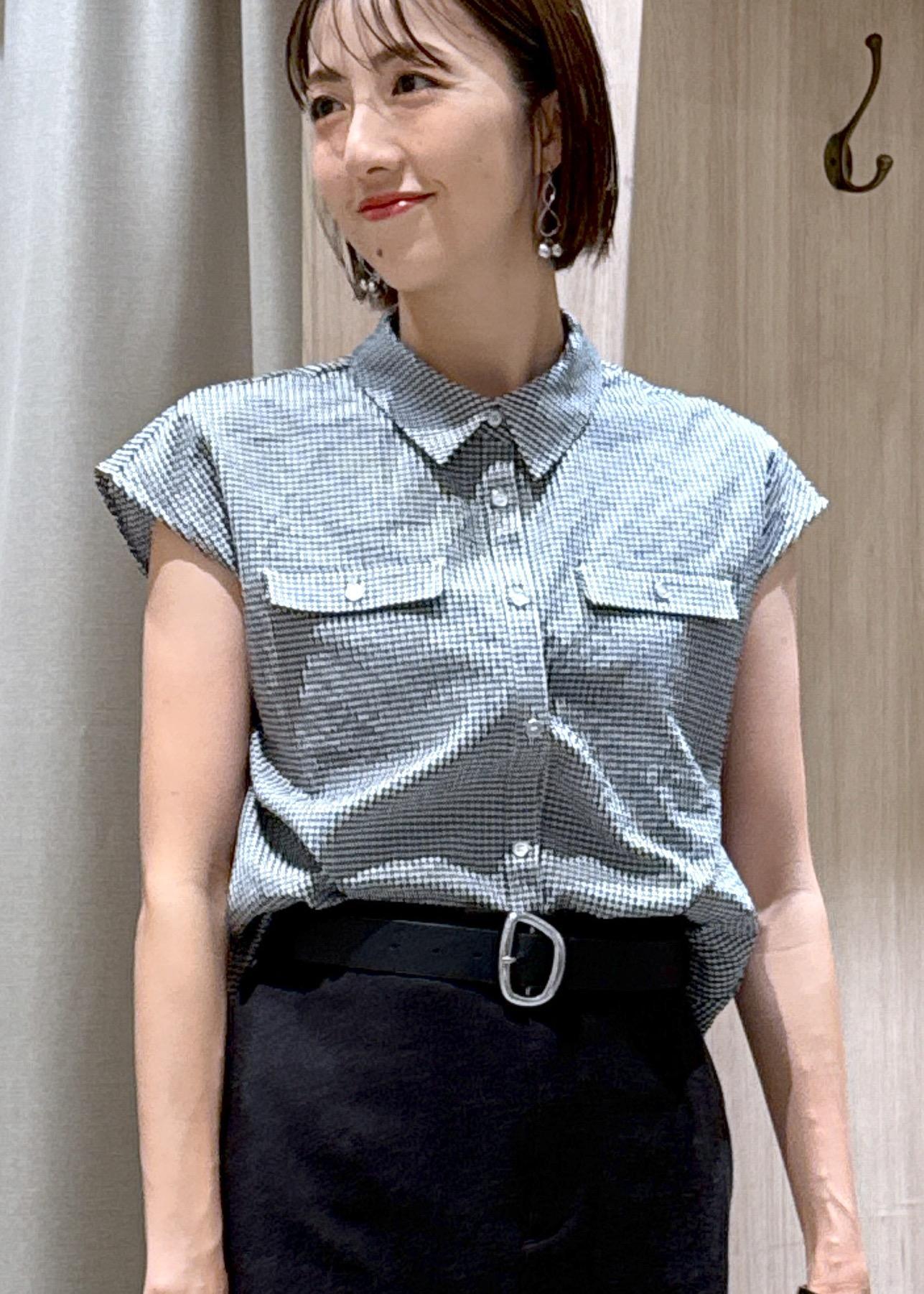 VIS【UVケア/洗える】フレンチスリーブサッカーブラウスブラック系 / F¥4,389レビュー身長166センチで腰下のコンパクトな長さでした。