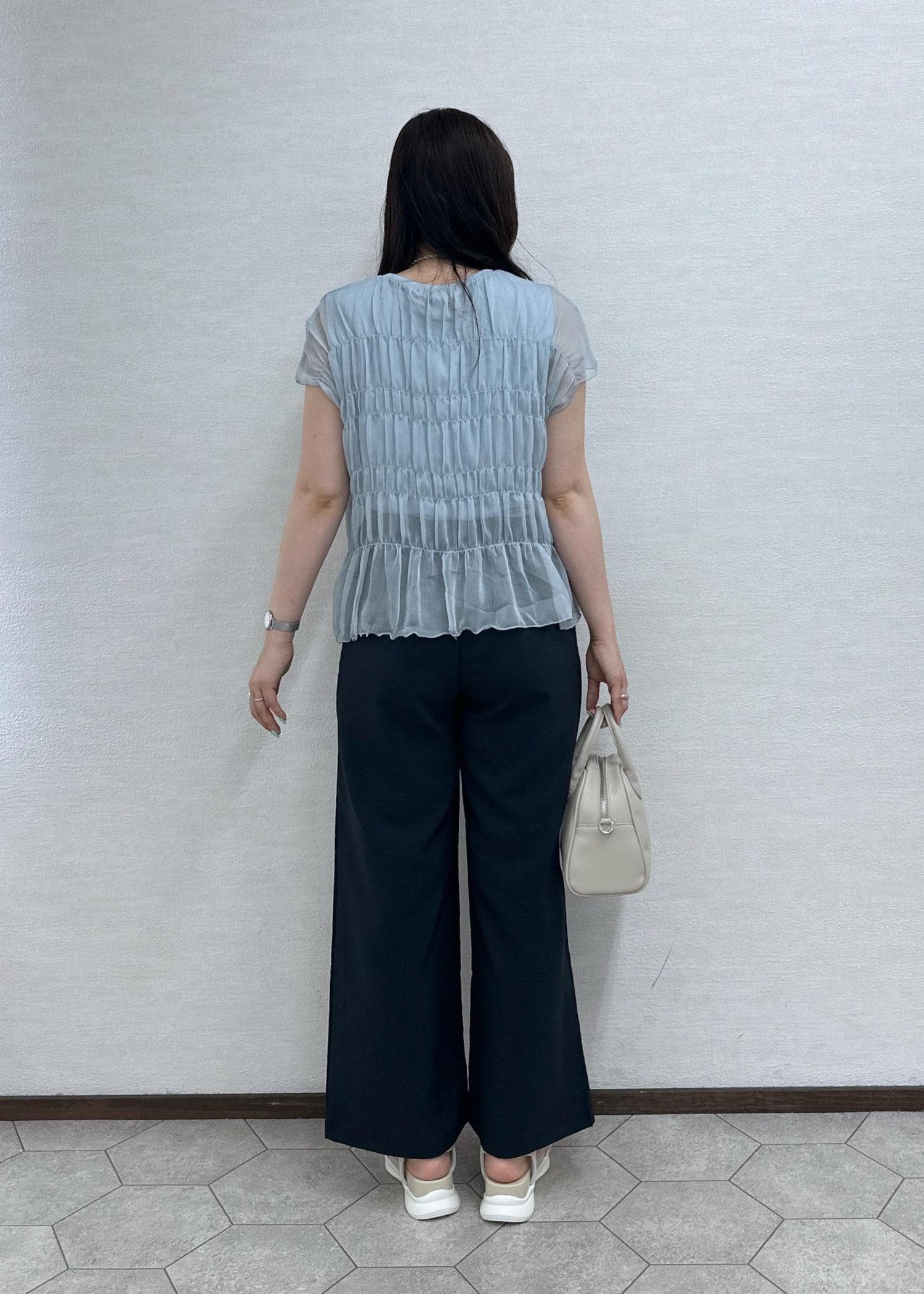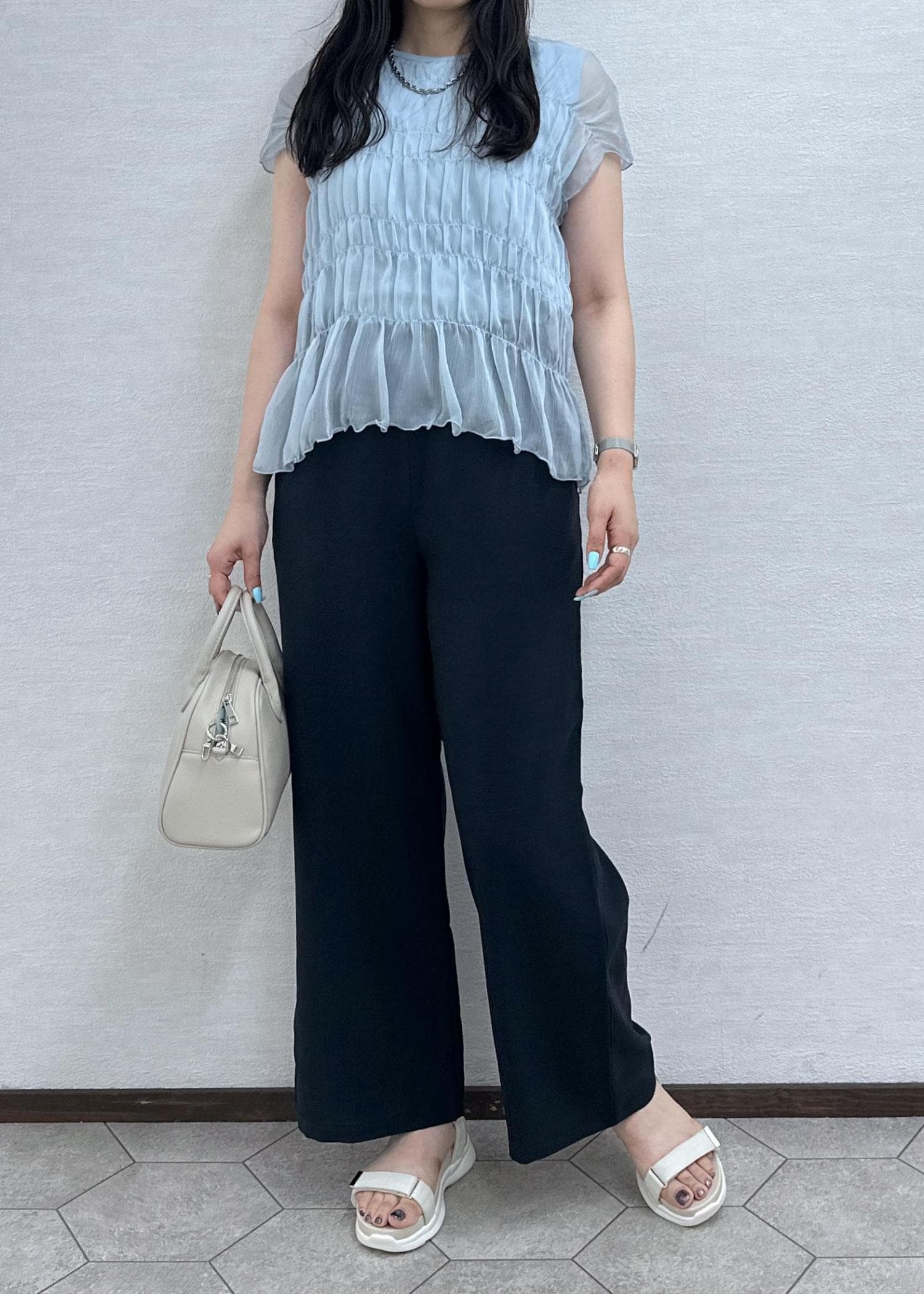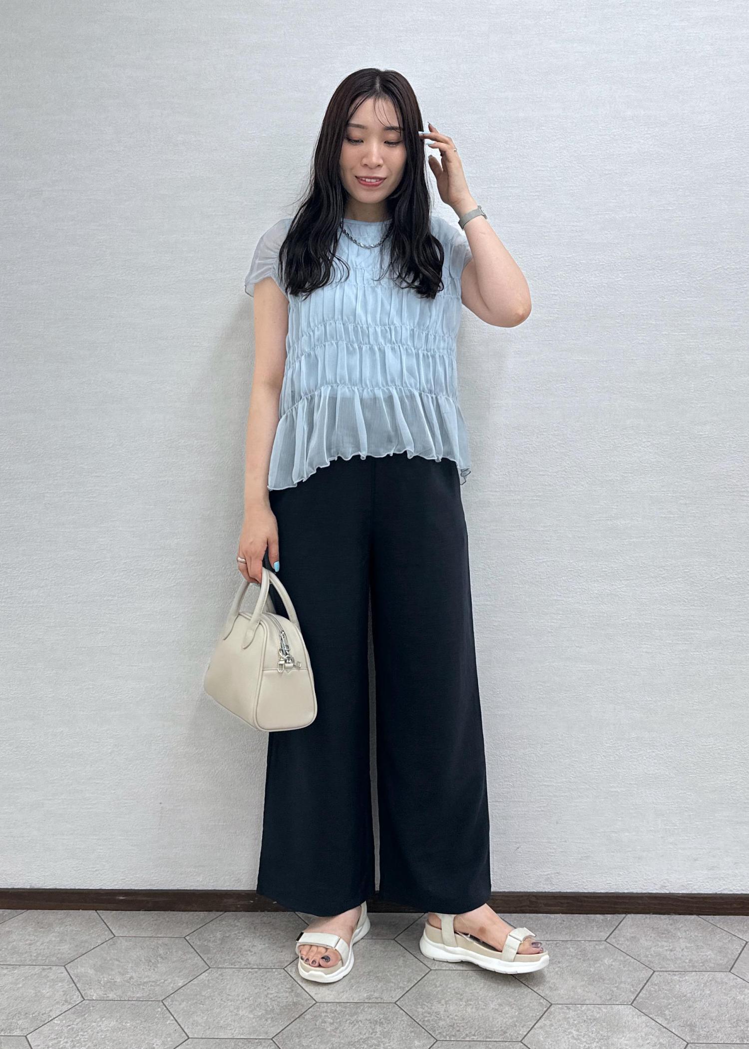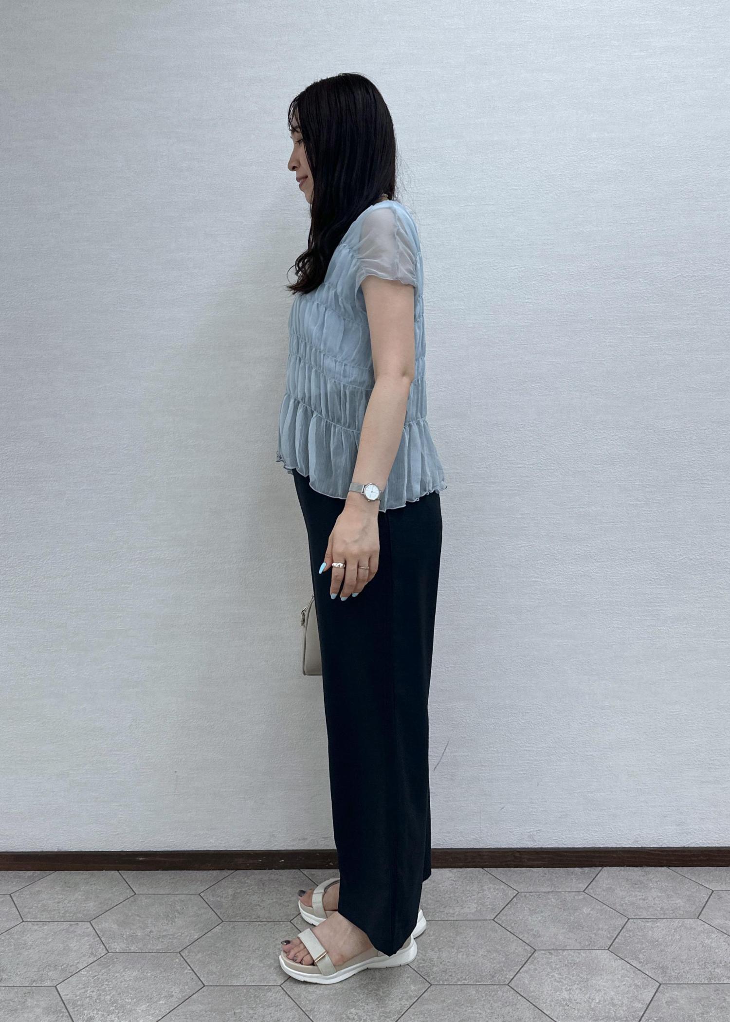着丈もしっかりとあるので高身長さんにもオススメ。シワになりにくいサラッとした生地なので扱いやすいです。 -