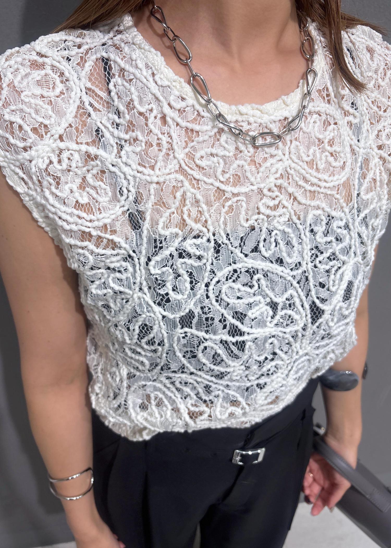 アウトレットVISコードレースシアーノースリーブプルオーバーオフホワイト / F¥4,391レビュー敏感肌ですがチクチク間はありません。
