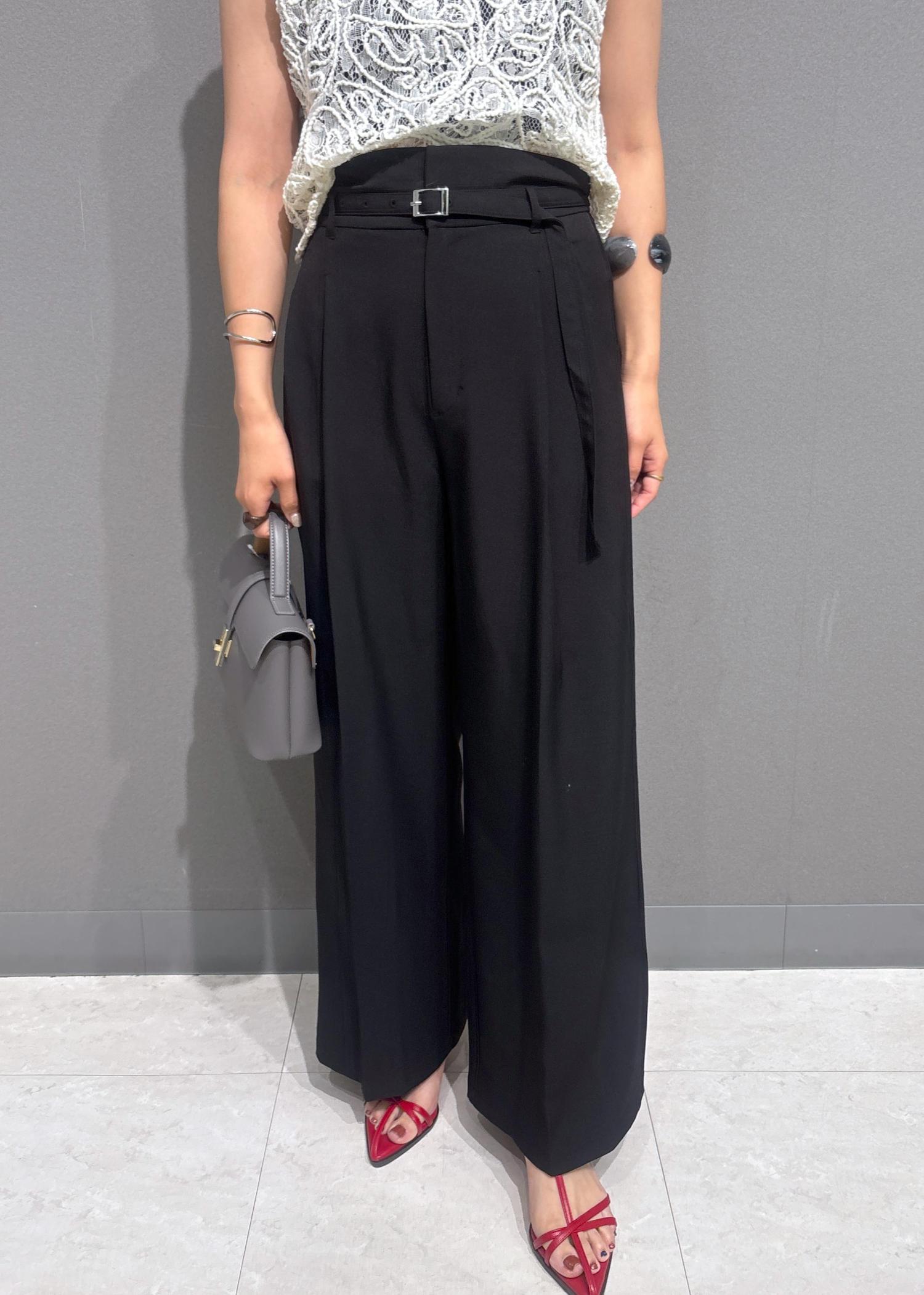 VIS【新色追加】【防シワ/接触冷感】ベルトディテールタックワイドスラックスパンツブラック / M¥6,589レビューさらっとした生地でシワになりにくいです。