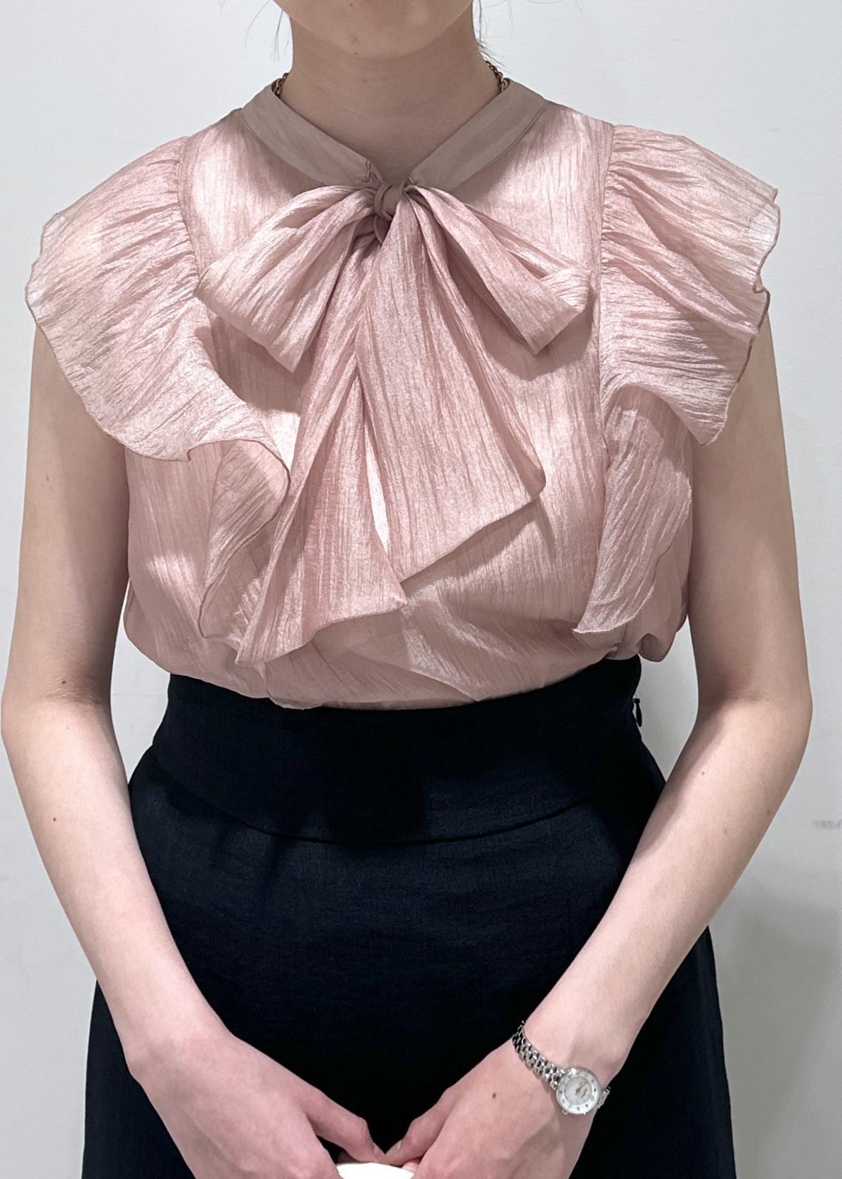 VIS【店頭人気】主役級!華やぎシアーシャイニーボウタイフリルブラウス【前後2WAY】【洗える】ピンク / F¥5,489レビュー160cm着用で着丈が腰くらいです