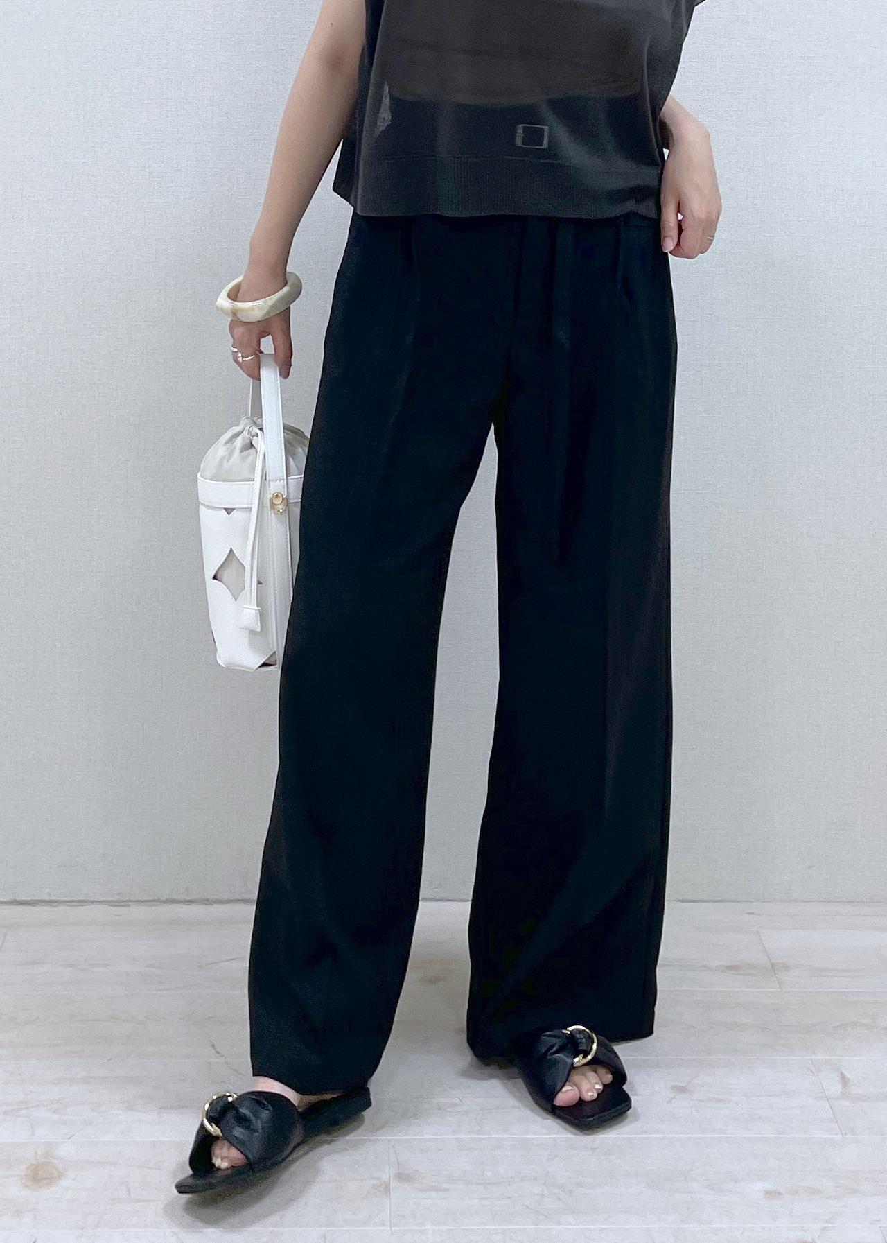 VIS【新色追加】【防シワ/接触冷感】ベルトディテールタックワイドスラックスパンツブラック / M¥6,589レビュー生地が柔らかく、サラッとしており、とても履きやすいです。