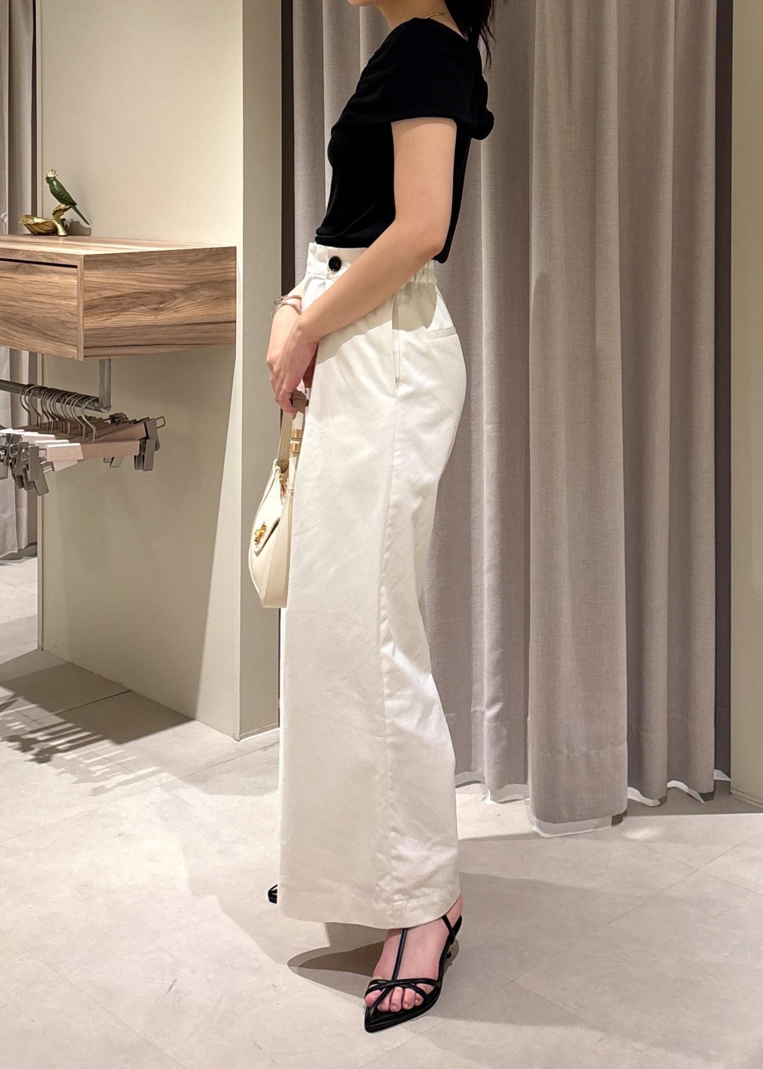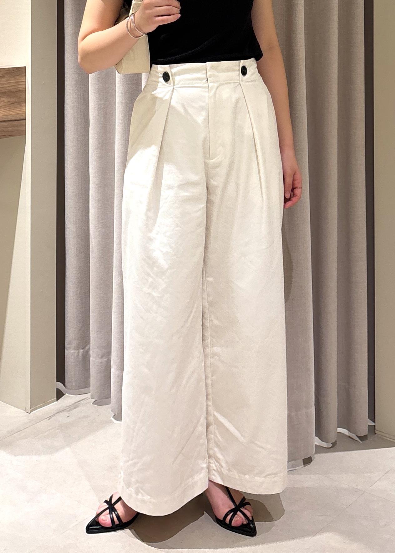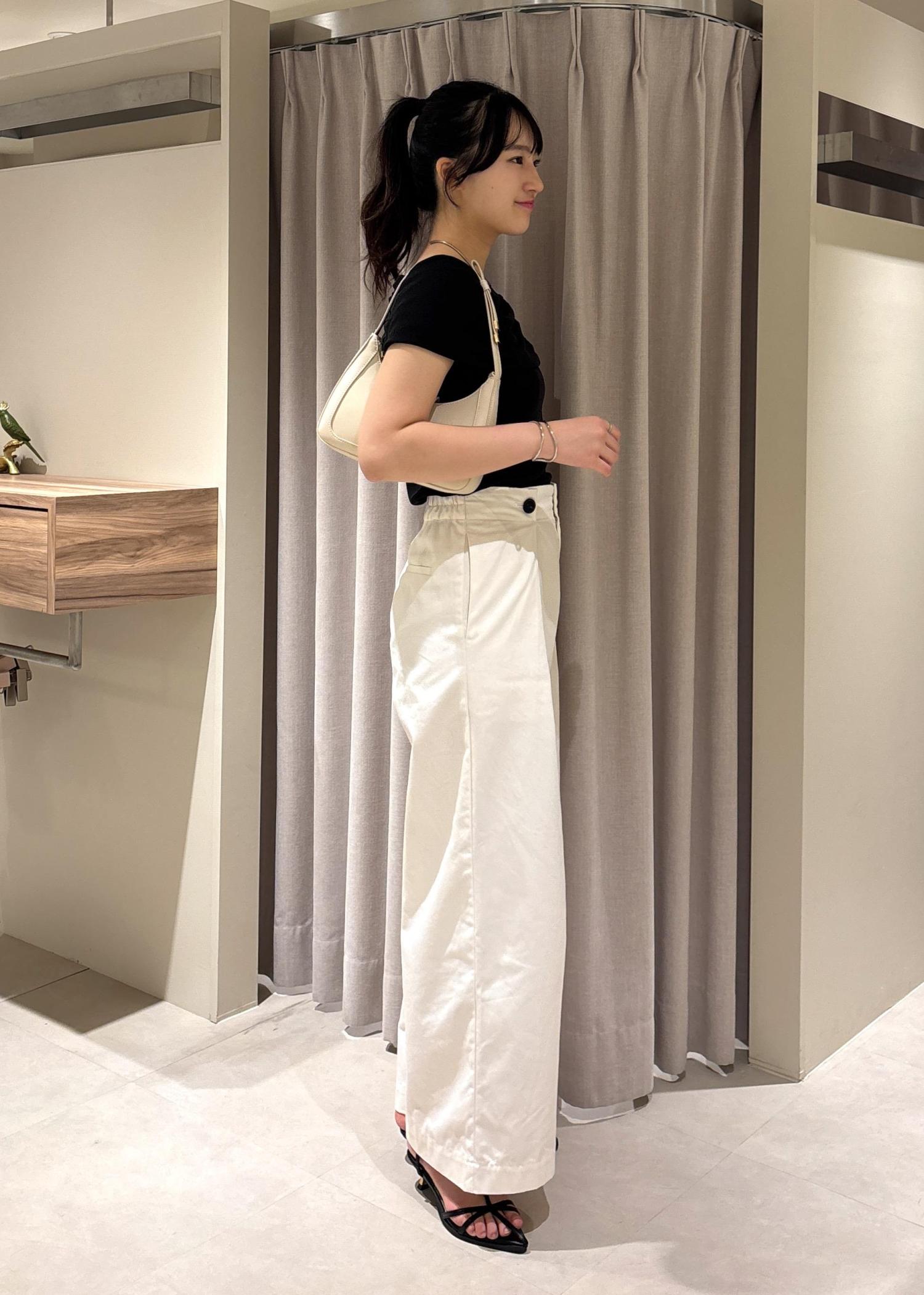 太めなバギーパンツ。ウエストはややフィット感があり、メリハリが出てすっきり着用出来ます◎