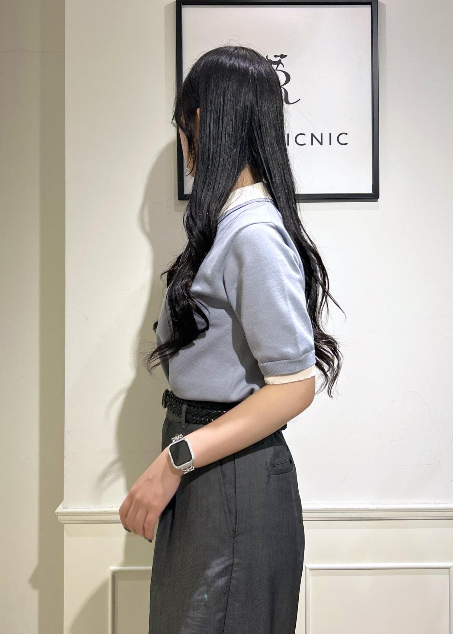 ROPÉ PICNIC【新色追加】バイカラーレイヤード風ニットポロシャツサックス / 38¥4,499レビュージャストなサイズ感ですが、ニットなので伸びがいいです。