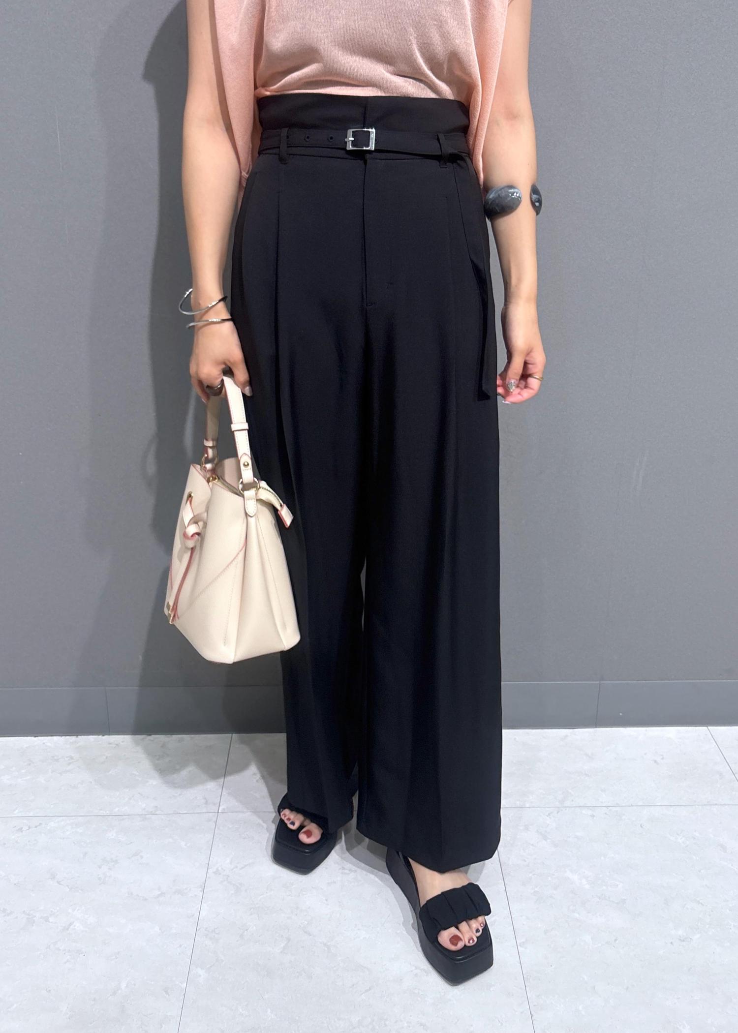 VIS【新色追加】【防シワ/接触冷感】ベルトディテールタックワイドスラックスパンツブラック / M¥6,589レビューさらっとした生地でシワになりにくいです。