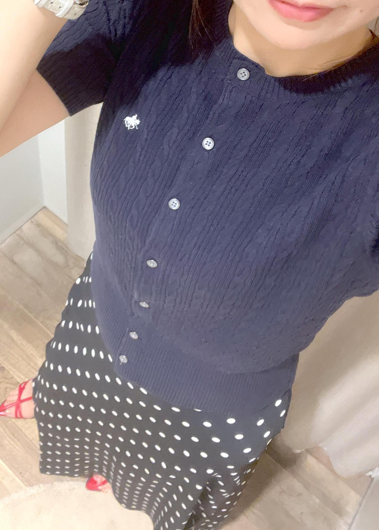 VIS【POLO BCS】VIS別注ハーフスリーブミニケーブルカーディガンネイビー / F¥6,600レビュー大人気のPOLOBCSカーディガン、細めのツイストリブデザインでとても可愛く着られます!