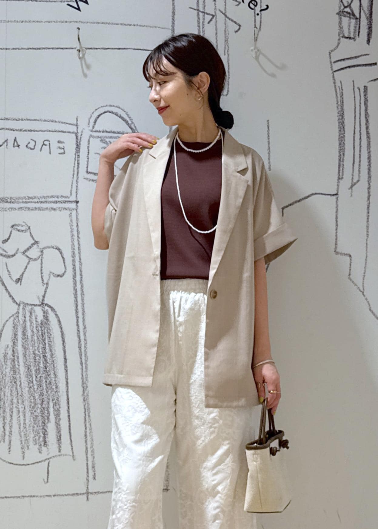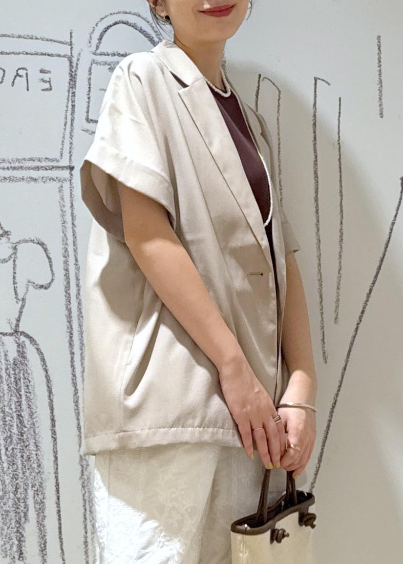 ROPÉ PICNIC【接触冷感・UVカット・速乾】【リネンライク・シリーズ】シアーハーフスリーブジャケット/セットアップベージュ / 38¥6,996レビュー麻のようなシャリみのある生地感で真夏も快適に過ごせます。二の腕カバーをしてくれる5分袖。シャツのような軽さで着心地がとても楽です。シワがつきにくいのも嬉しいポイント。