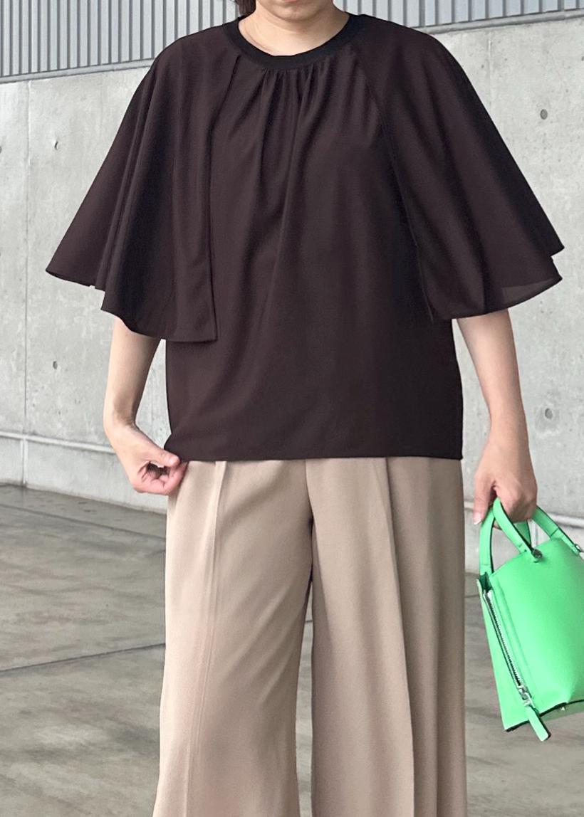 ROPÉ【洗える】ケープスリーブ リンキングブラウスダークブラウン / F¥13,200レビュー身長161㎝で普段38サイズを着用。
