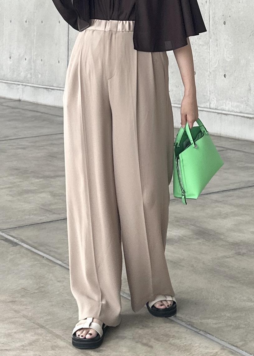 ウエストを一折して少し厚底のシューズにするとギリギリ丈詰めせず履いていただけます。とてもサラッとしていて薄手なので真夏も着回していただけます。ウエストもゴムになっているのでリラックス感がありながら少しキレイ目にも見せてくれる着まわしたくなる逸品です。 -
