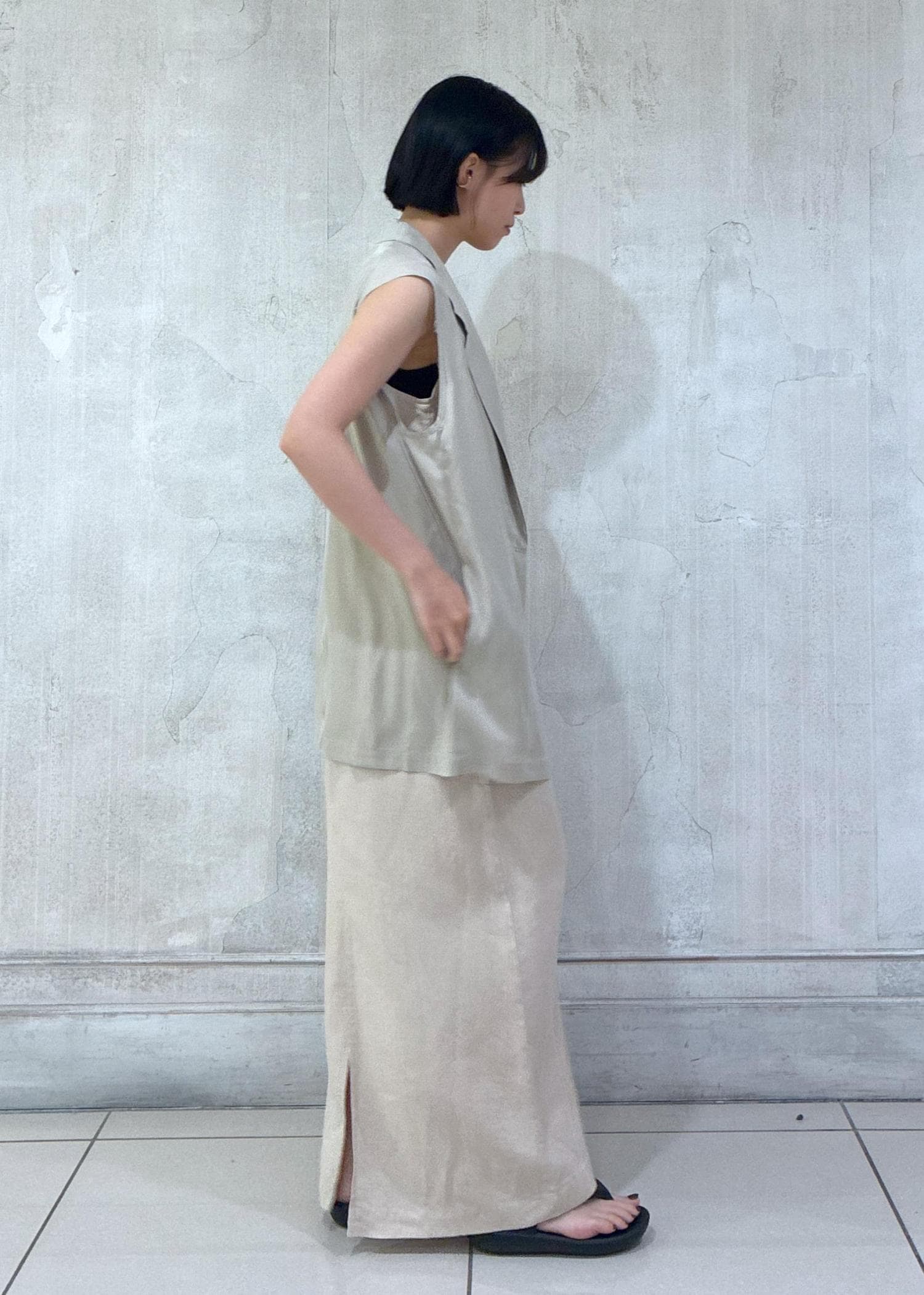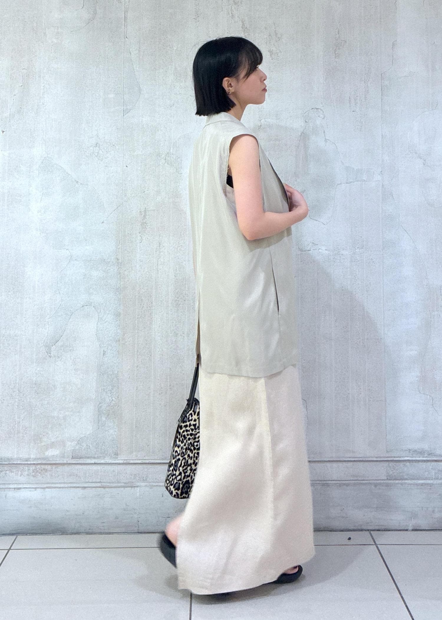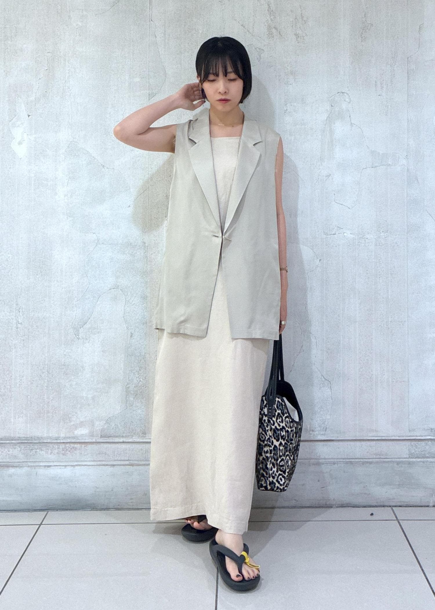 夏らしい清涼感のあるリネンワンピースを、ワントーンスタイルでシックにまとめてみました!