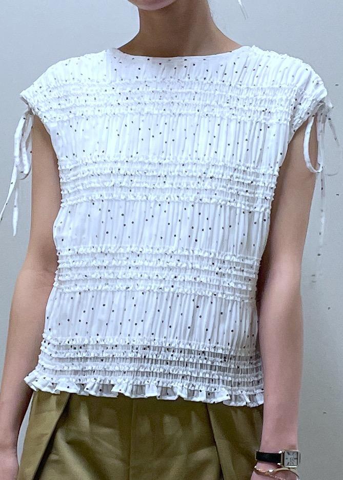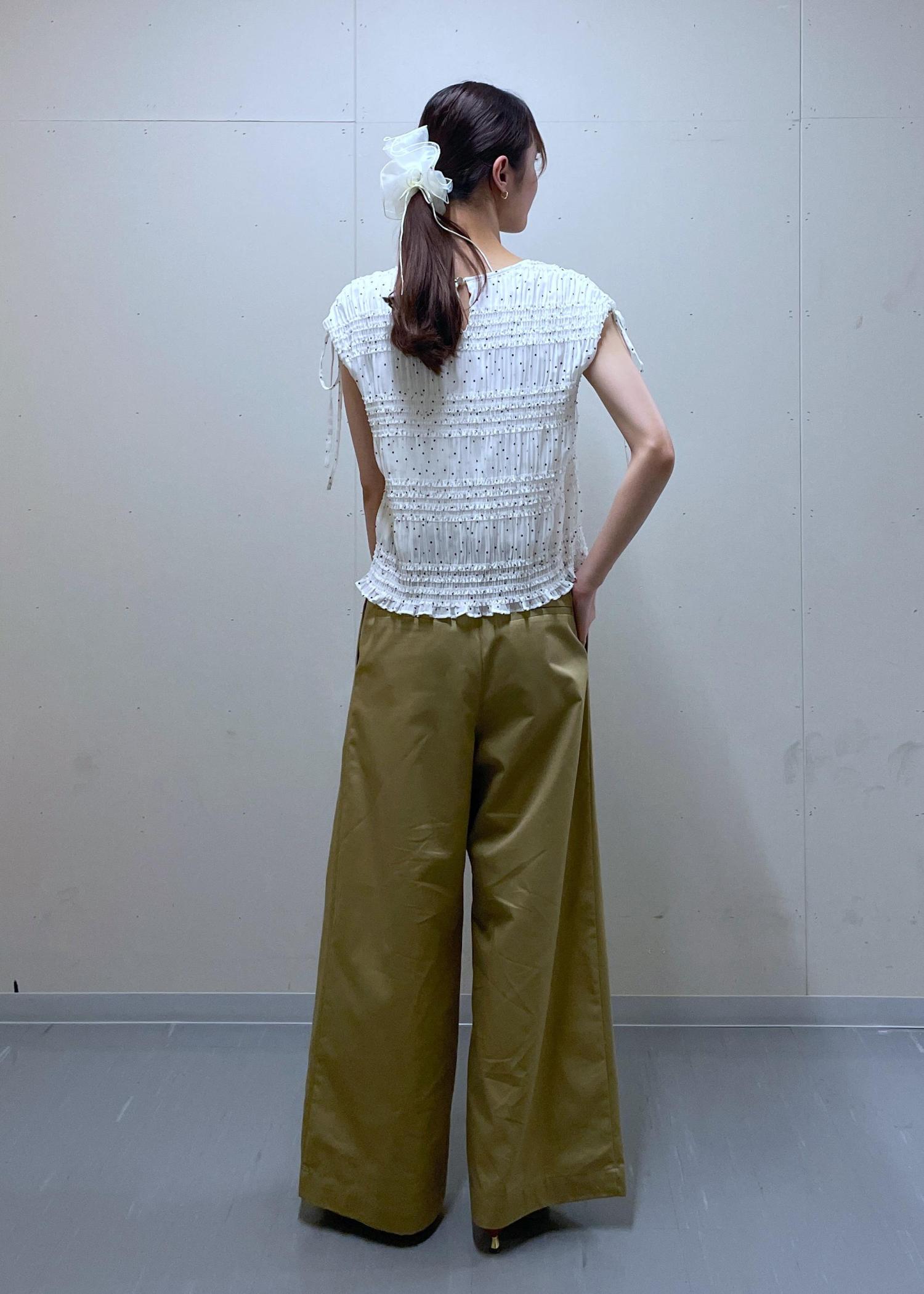 アウトレット 2BUY10%OFFVISプリーツシアーシャーリングブラウスホワイト系 / F¥3,842レビュー肩の紐の部分で調節ができるので肩幅など気になる方にもおすすめです。