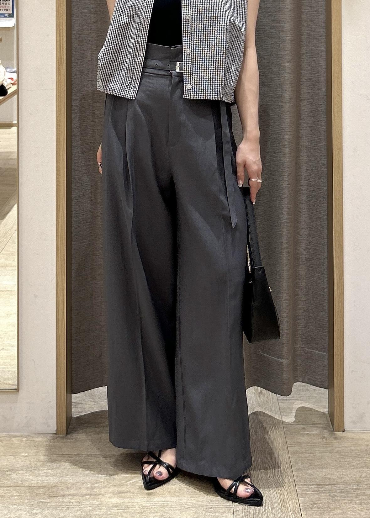 VIS【新色追加】【防シワ/接触冷感】ベルトディテールタックワイドスラックスパンツチャコール / S¥6,589レビュー157cmでSサイズを着用しています。
