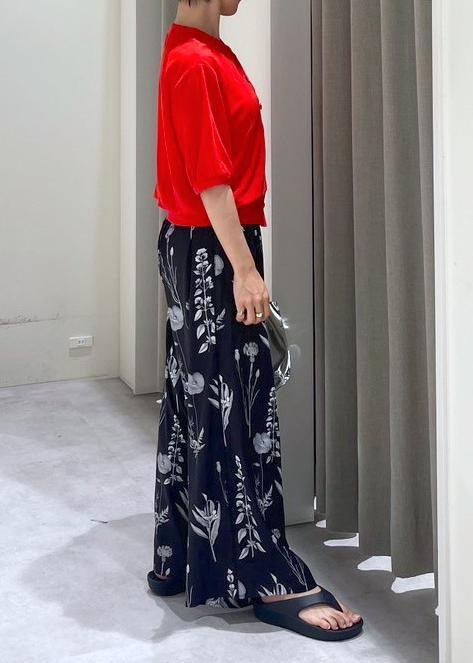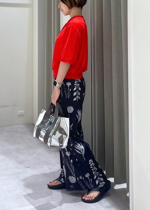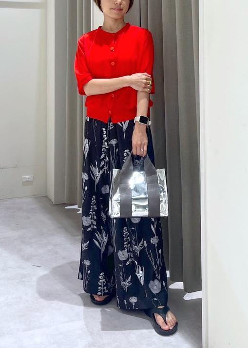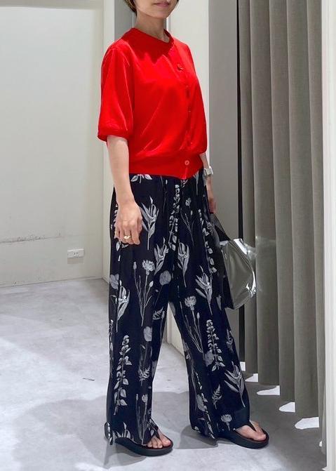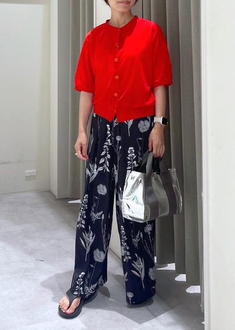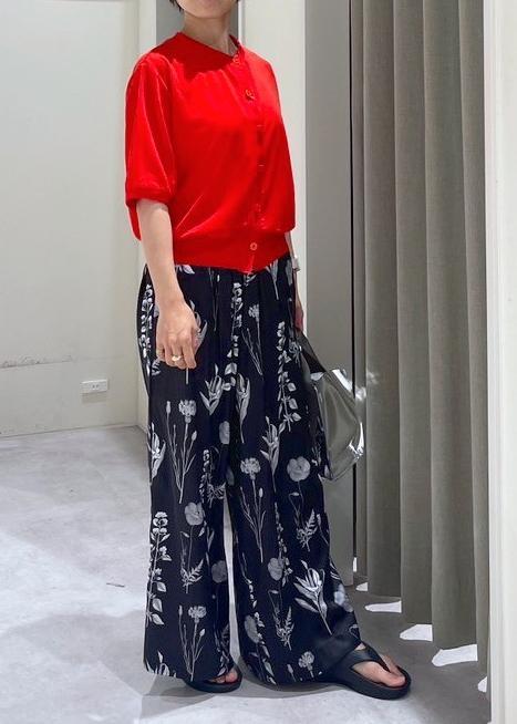 ボトムスの柄を活かしたかったので、Topsは赤だけど柄なしで合わせてみました。