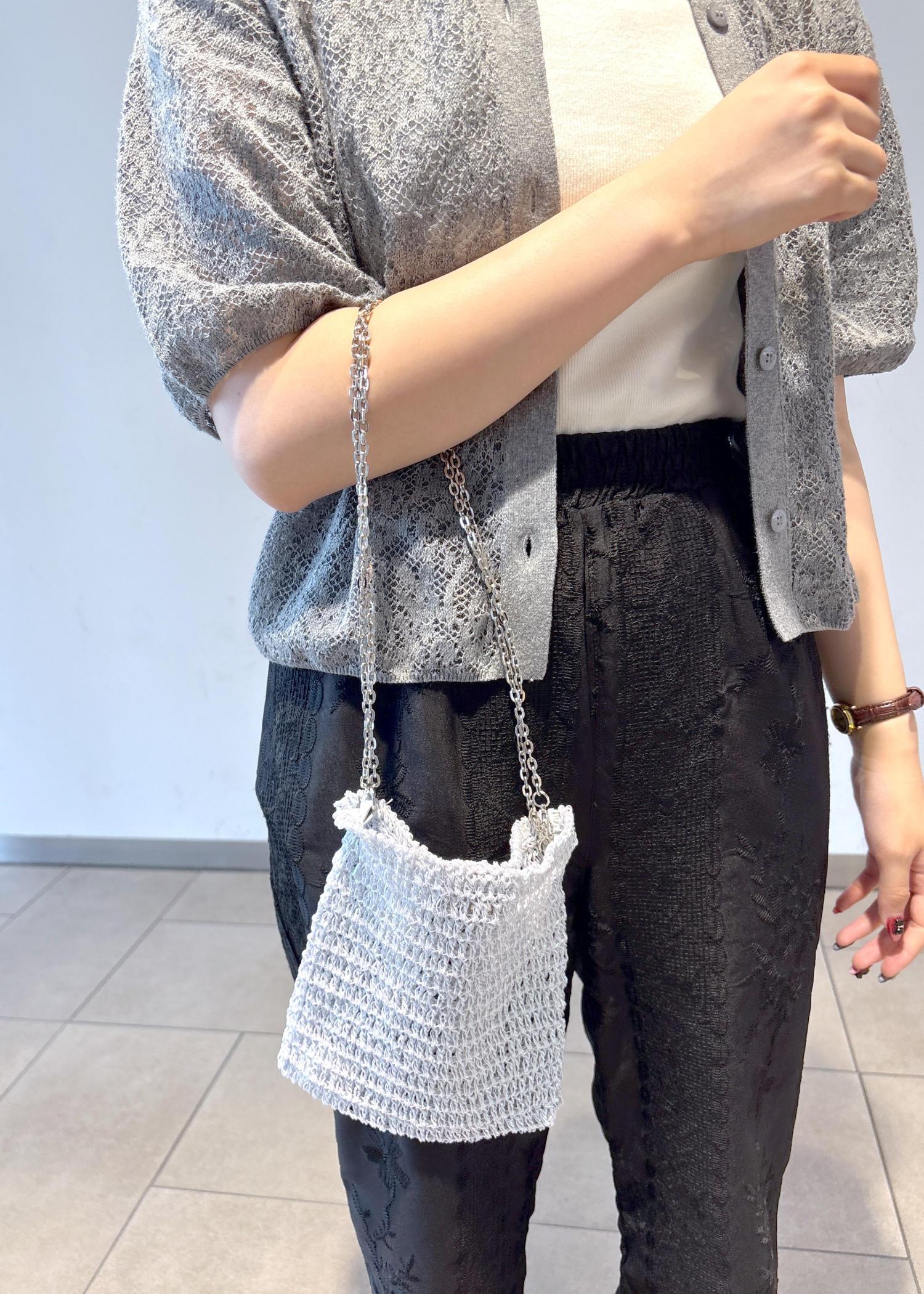 アウトレットROPÉ PICNIC PASSAGEメタリックヤーンミニチェーンショルダーバッグその他 / F¥1,997レビューミニサイズのバッグになっていてアクセサリー感覚で楽しめるアイテムです。ニット素材なので軽く、デザインもシンプルなのでどのコーデにも合わせることが可能です。