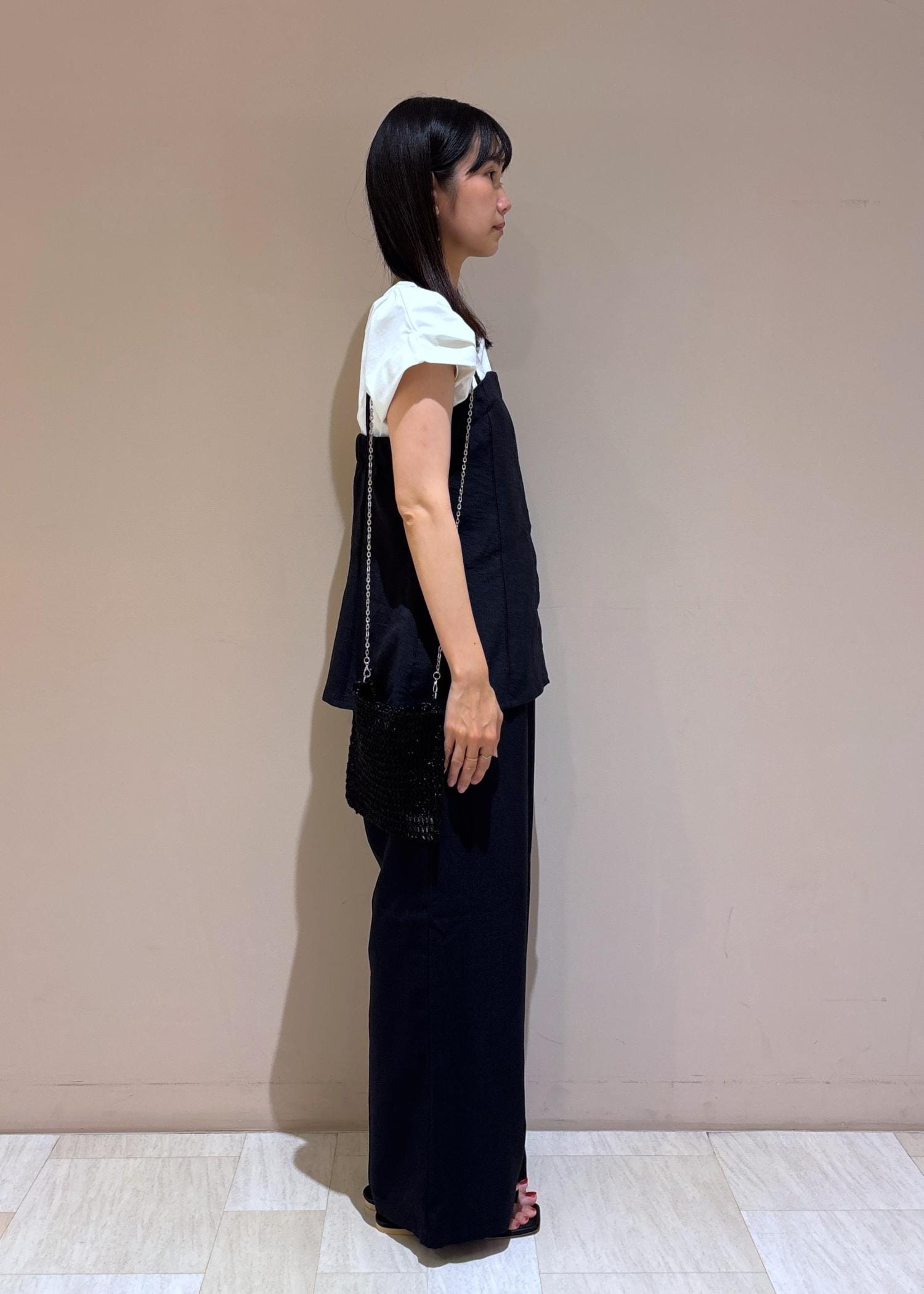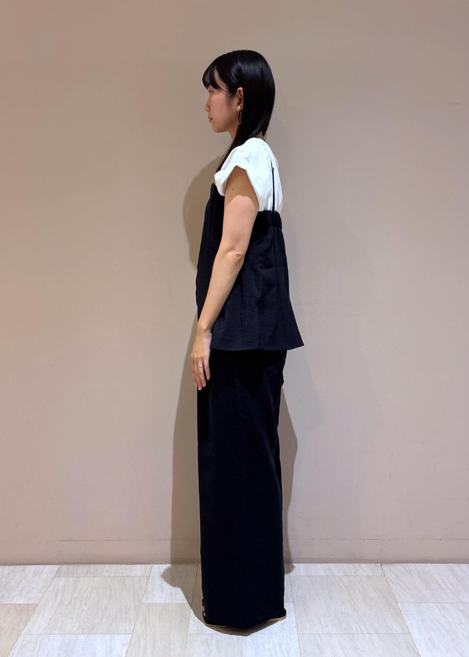 着丈が長めなのでお腹や腰まわりをカバーできます。 -