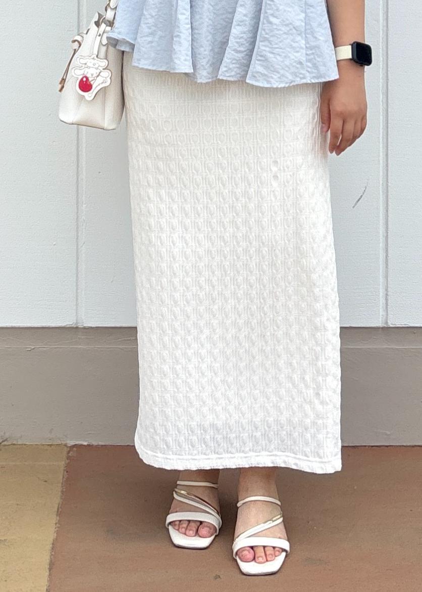 アウトレットVIS【新色追加】【接触冷感】膨れジャガードナロースカートオフホワイト / F¥3,293レビュー程良いフィット感がありますが、シルエットを拾いすぎないためどんなトップスとも相性抜群◎