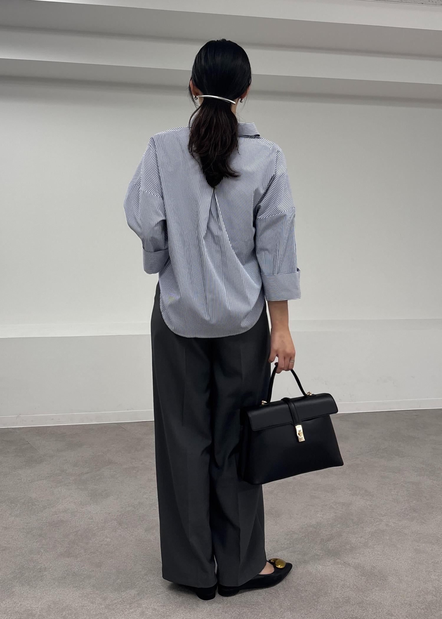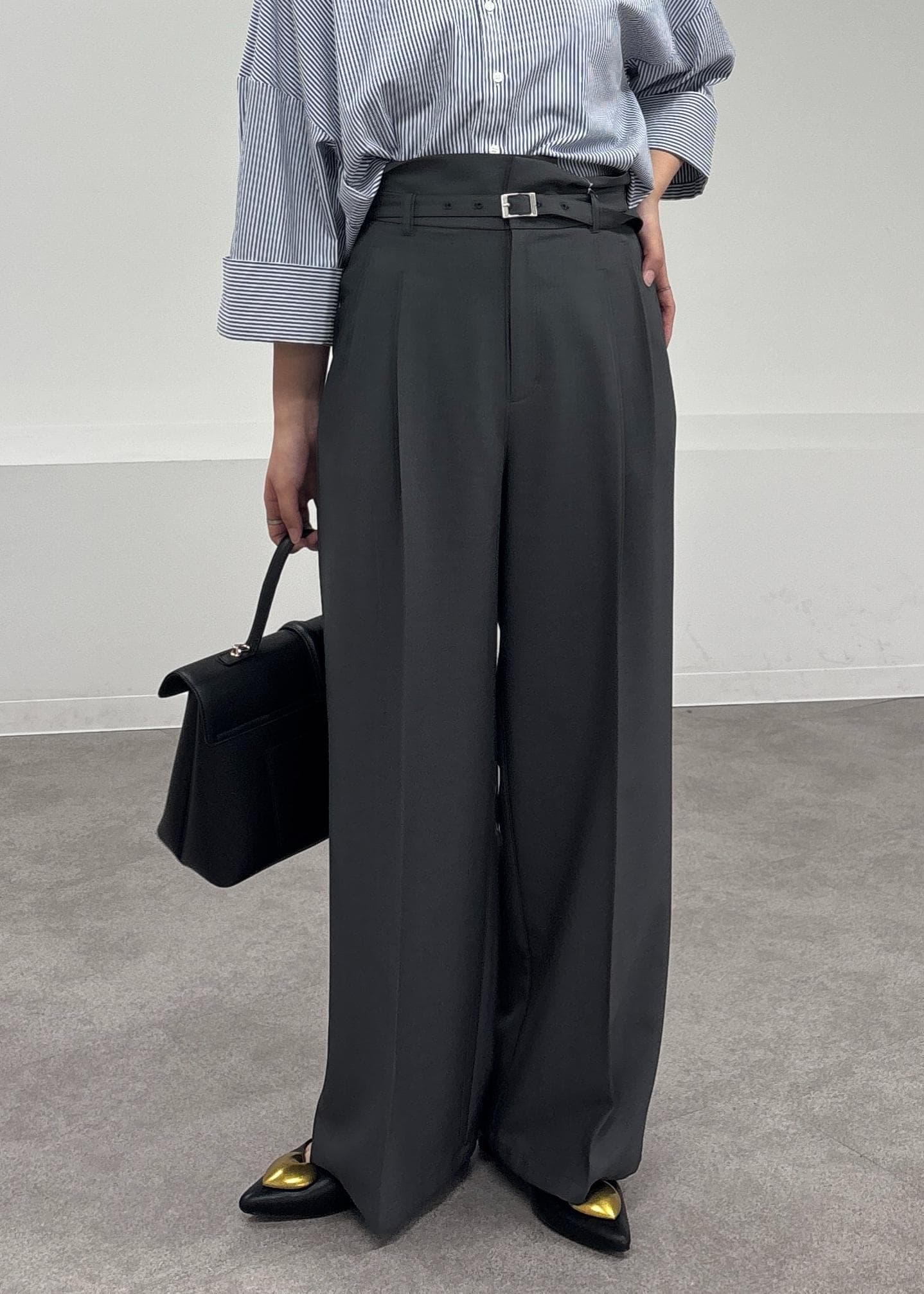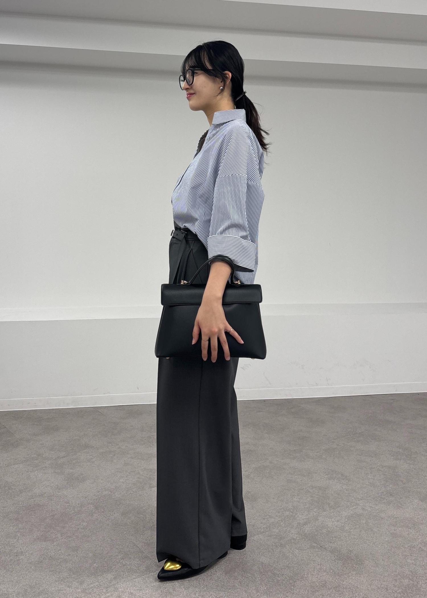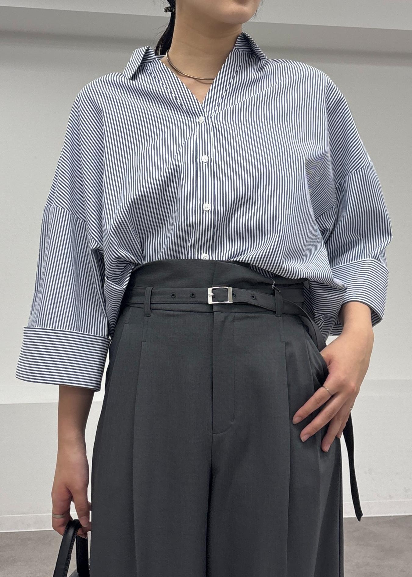 ワイドシルエットですが、広すぎないラインとベルトで綺麗見えもします! -