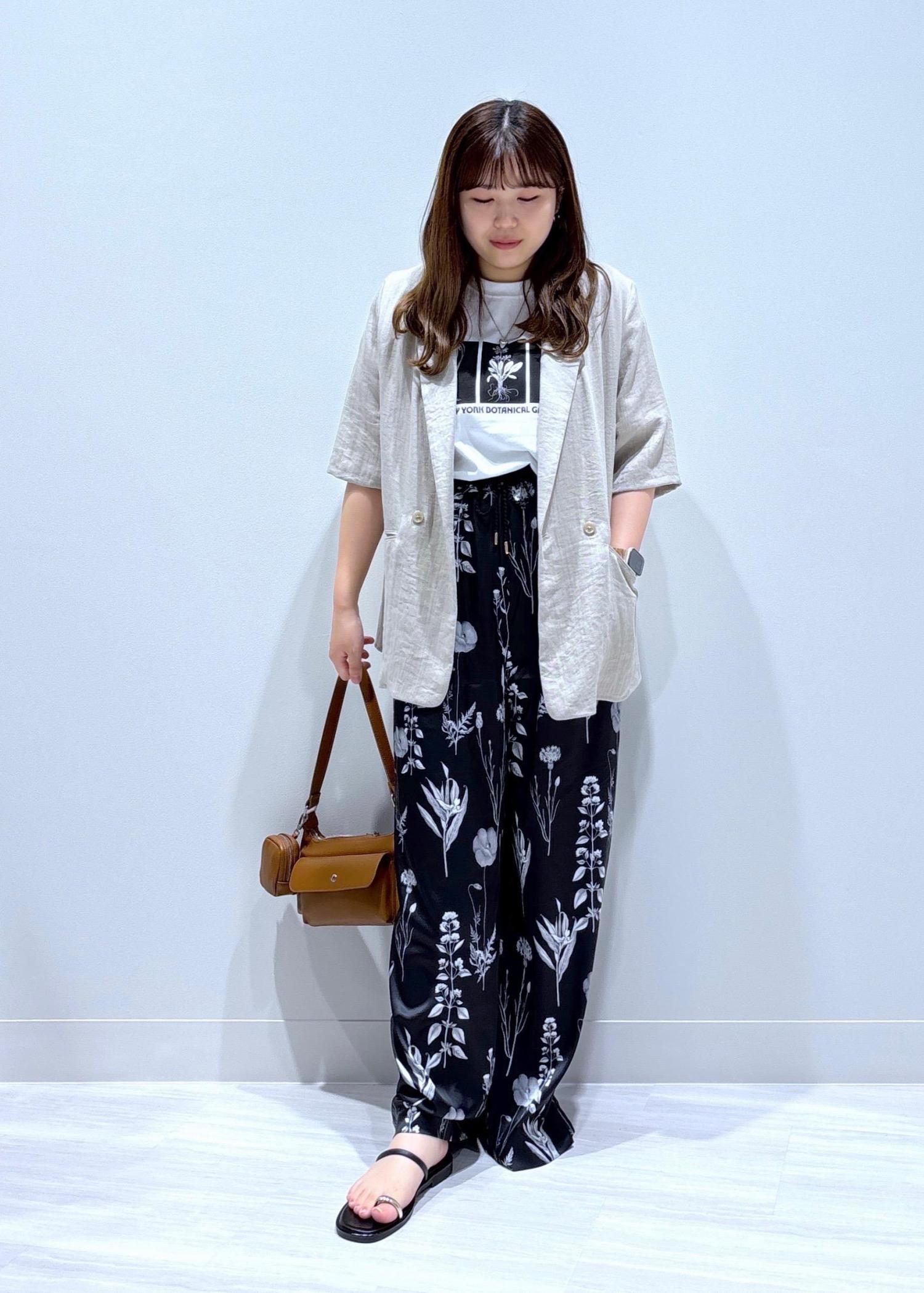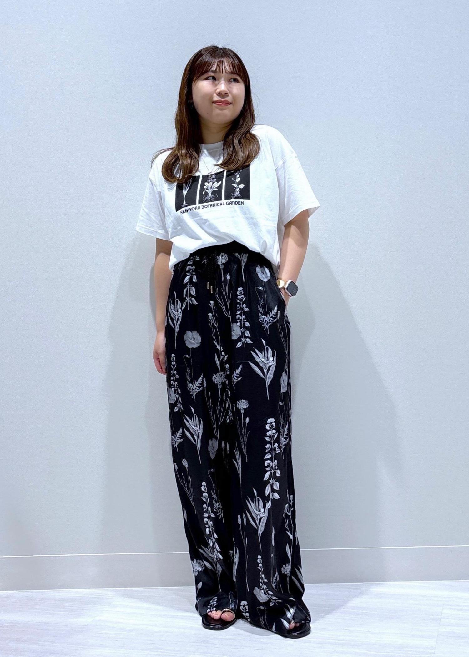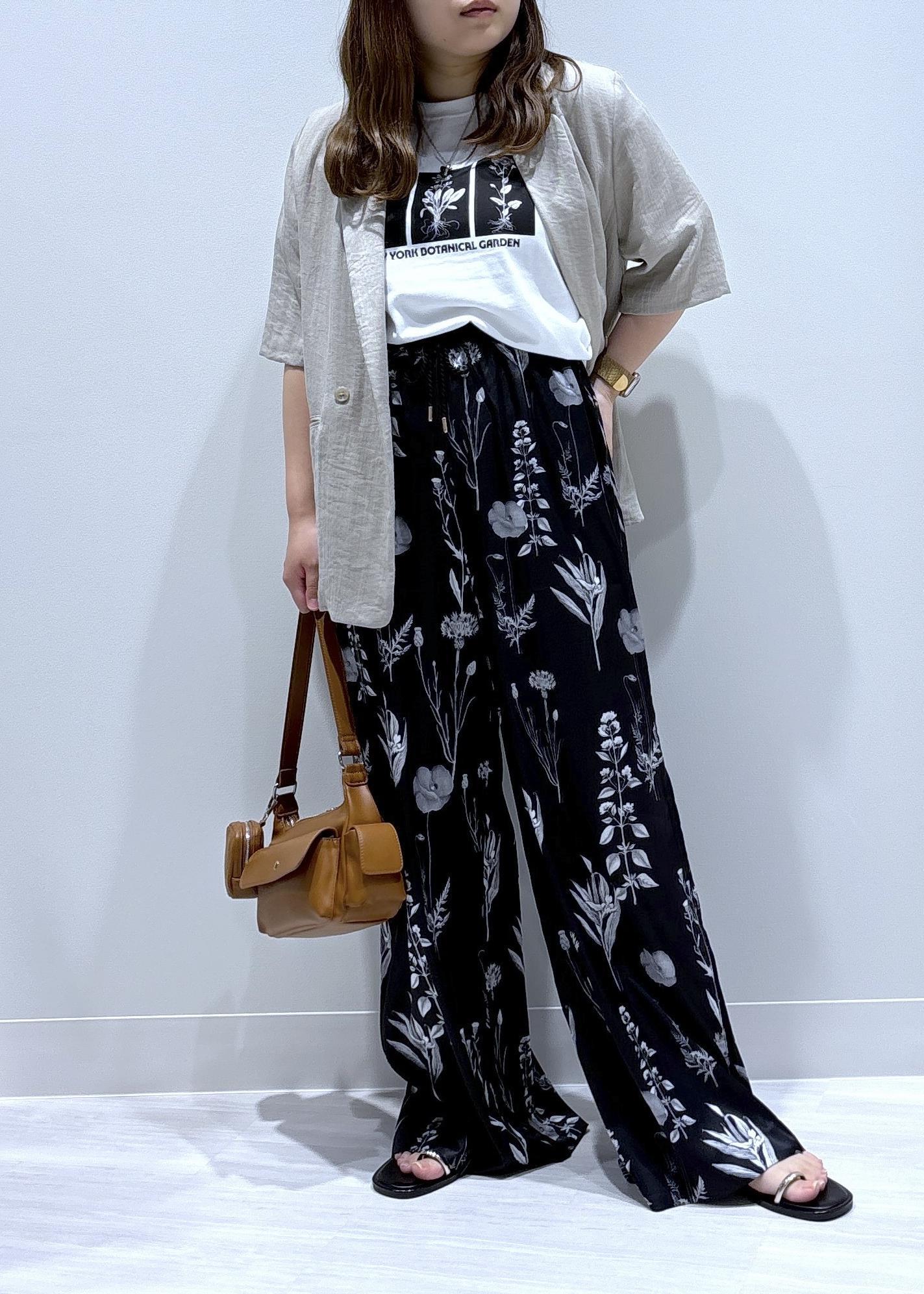 お花柄がかわいいプリントTシャツとパンツと合わせてフェミニンなボタニカルコーデにしてみました!