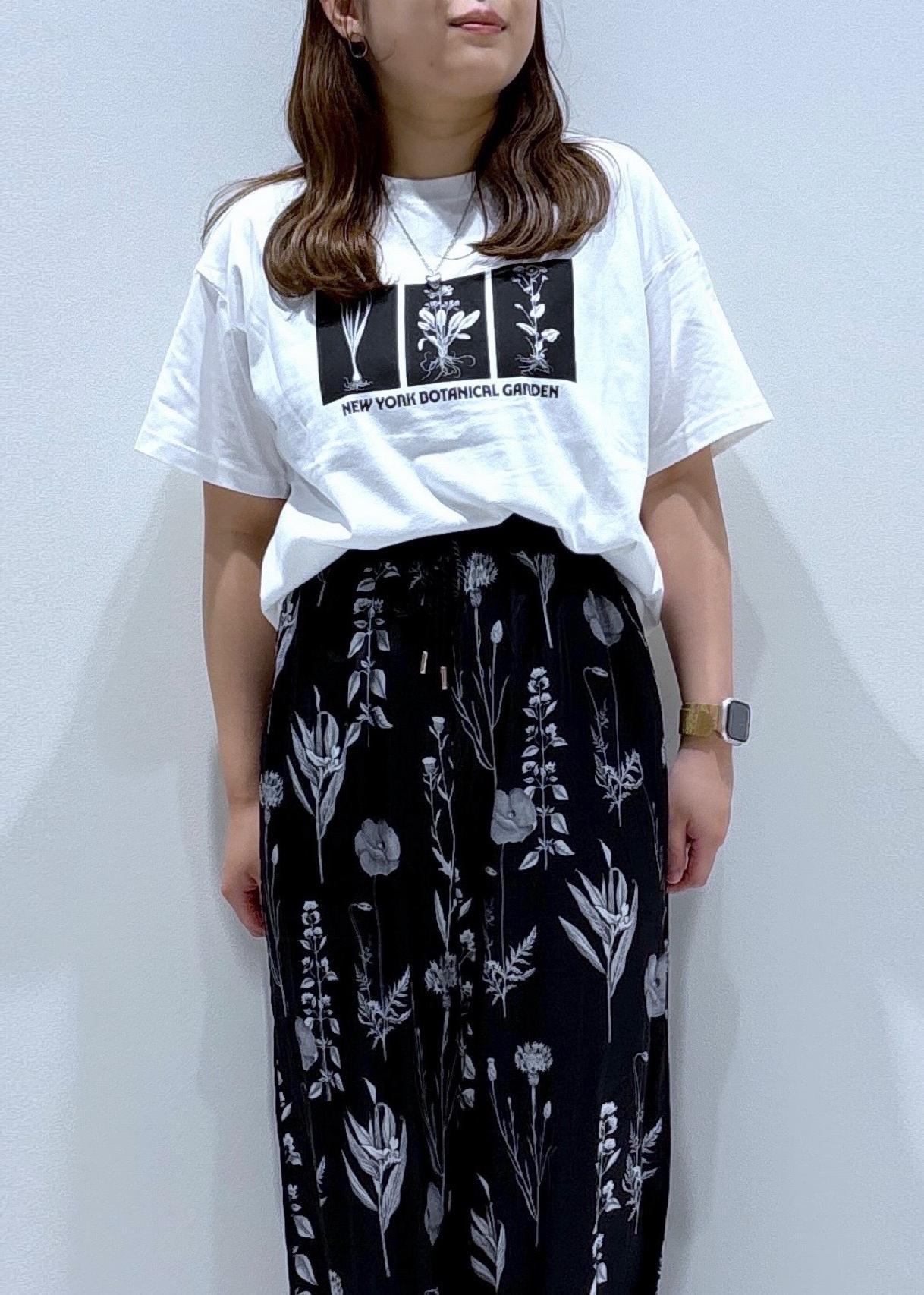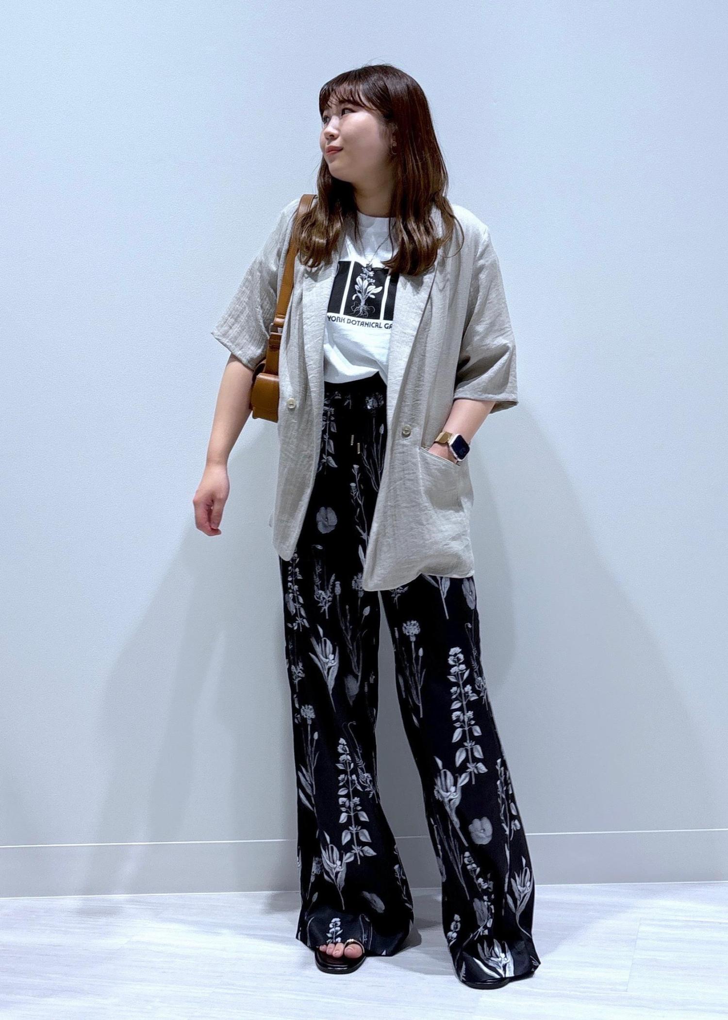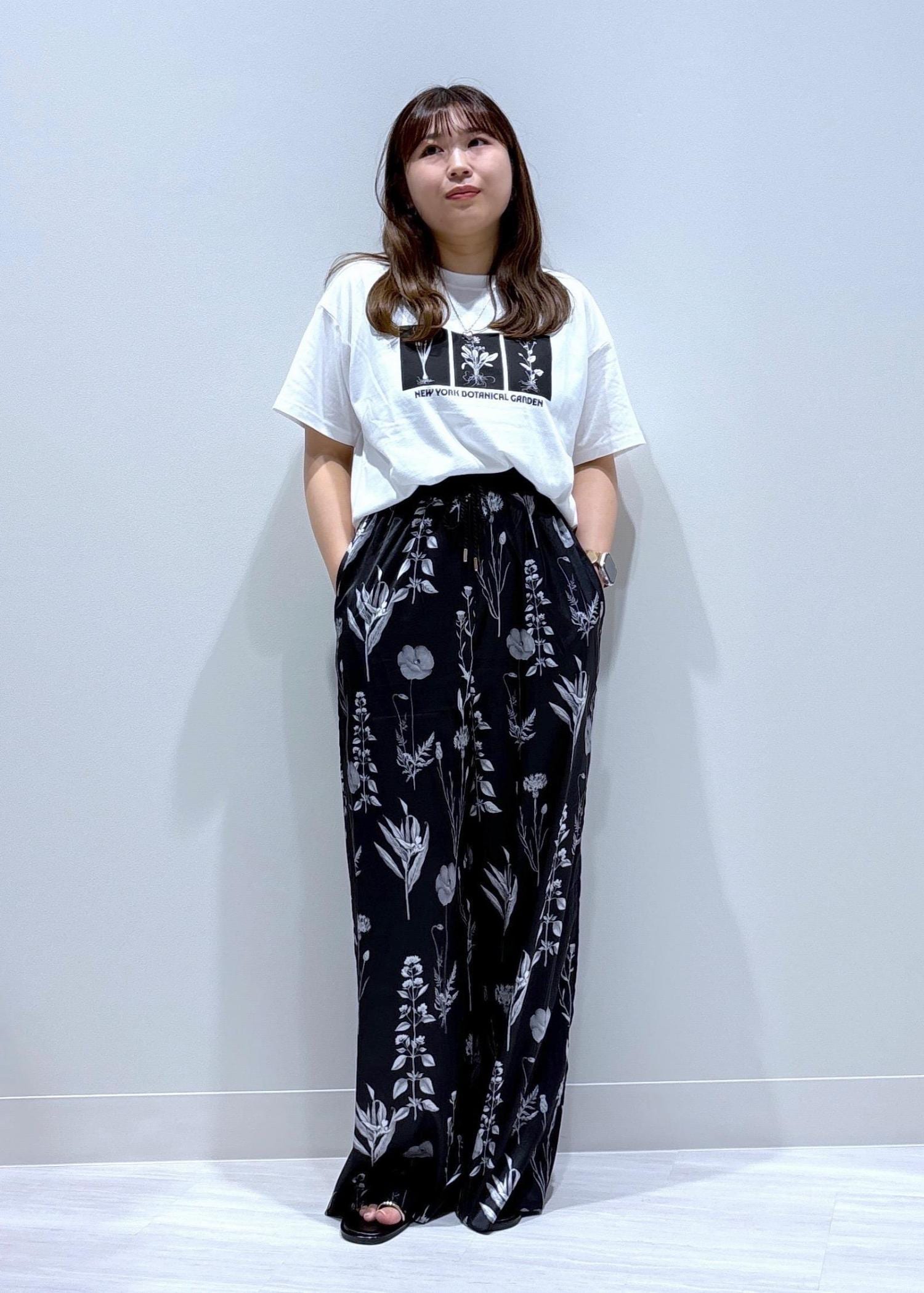 お花柄がかわいいプリントTシャツとパンツと合わせてフェミニンなボタニカルコーデにしてみました!