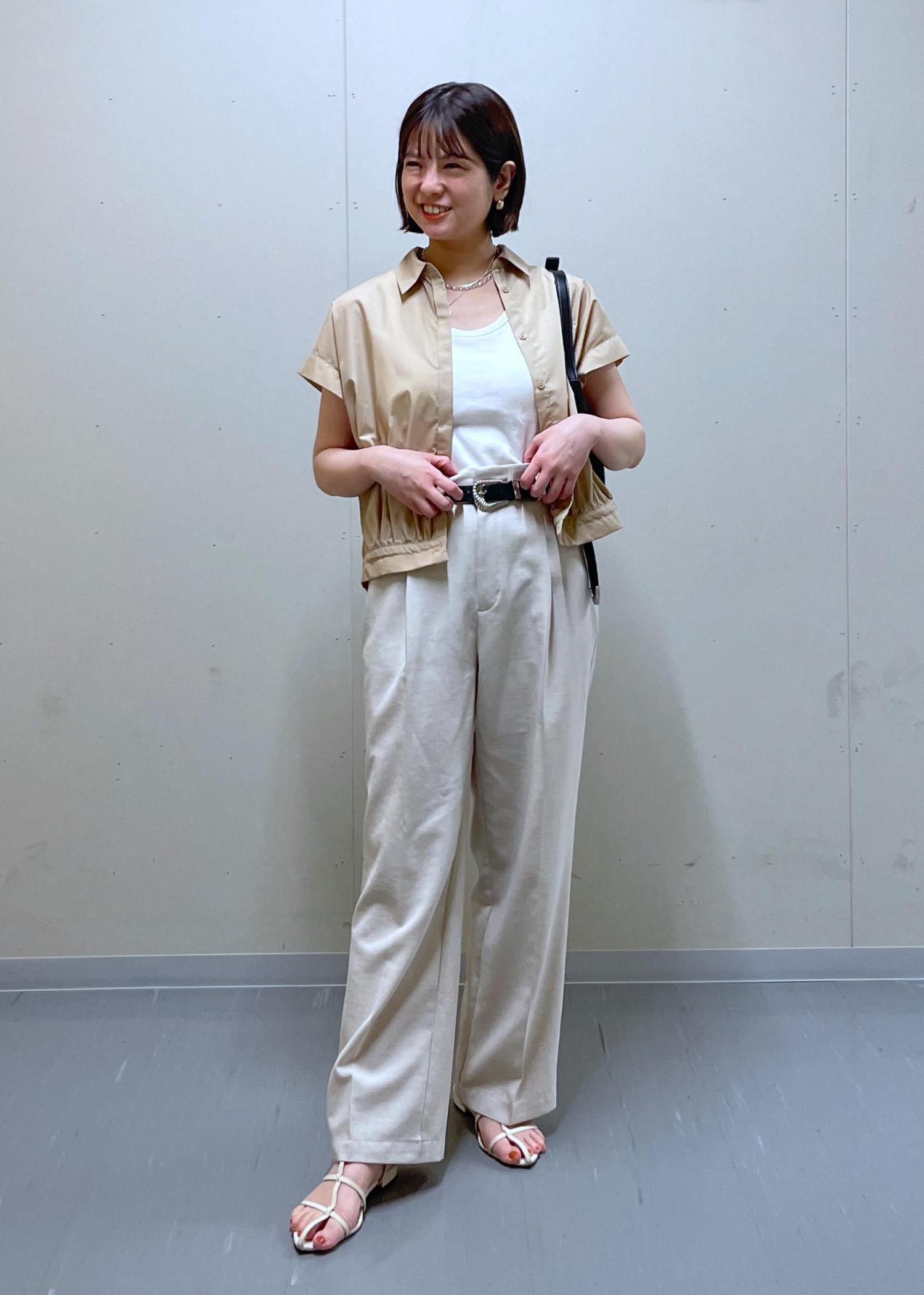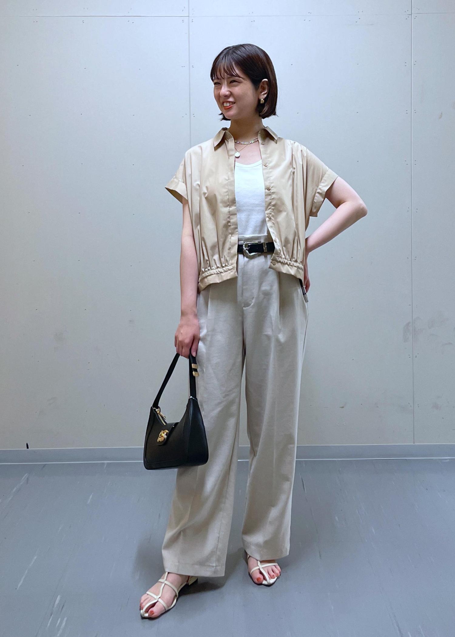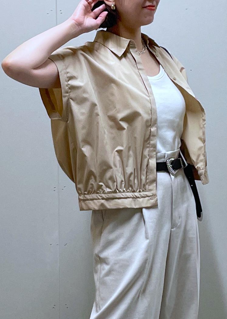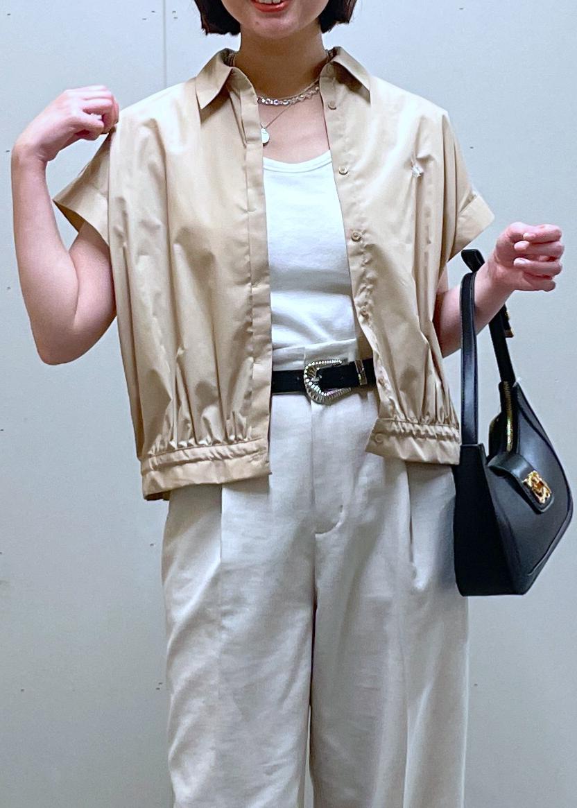 VIS【POLO BCS】VIS別注フレンチスリーブドローストリングシャツベージュ系 / F¥6,050レビュー少しハリ感があり、綿混でサラッとした肌触りです。