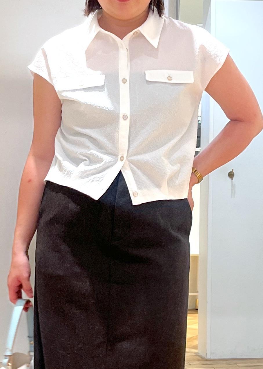 ブラウスは凹凸のあるサッカー生地になっているので、汗ばむ夏場でも張り付くことなくサラッと着れて重宝します!
