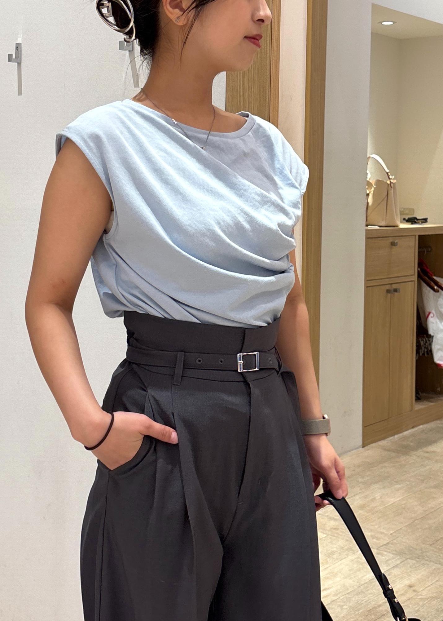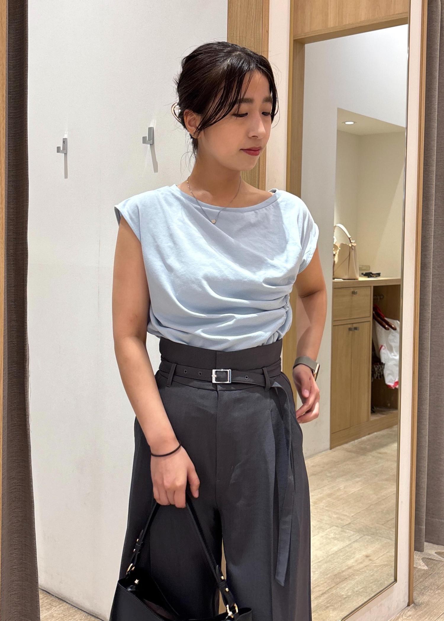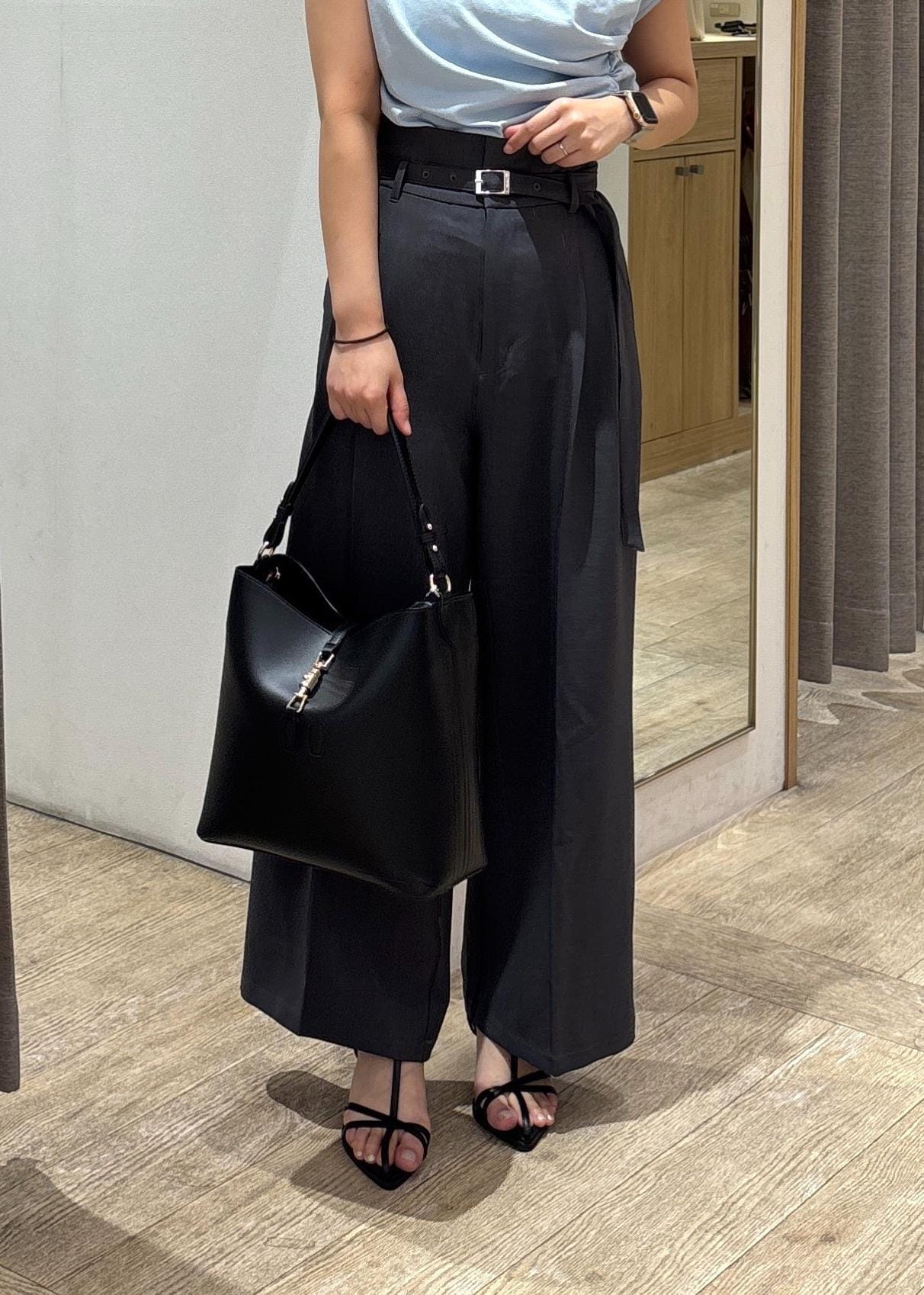 テロンとした落ち間のある素材で広がりすぎず、低身長さんもワイドパンツをスッキリ着られるアイテムです☺︎