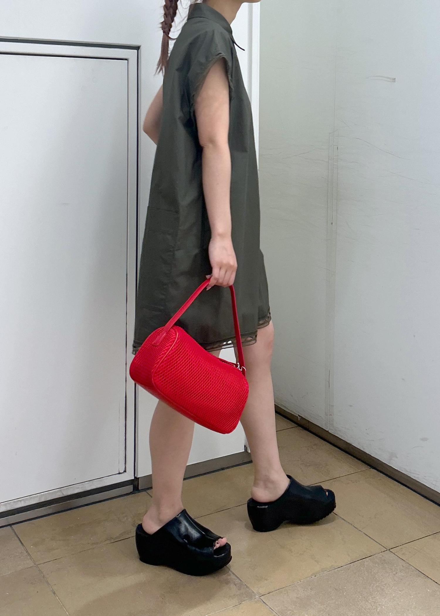 ADAM ET ROPÉ FEMMEメッシュワンハンドルミニバッグレッド / F¥16,940レビューマチがしっかりあるので長財布などある程度横長のものも入ります!