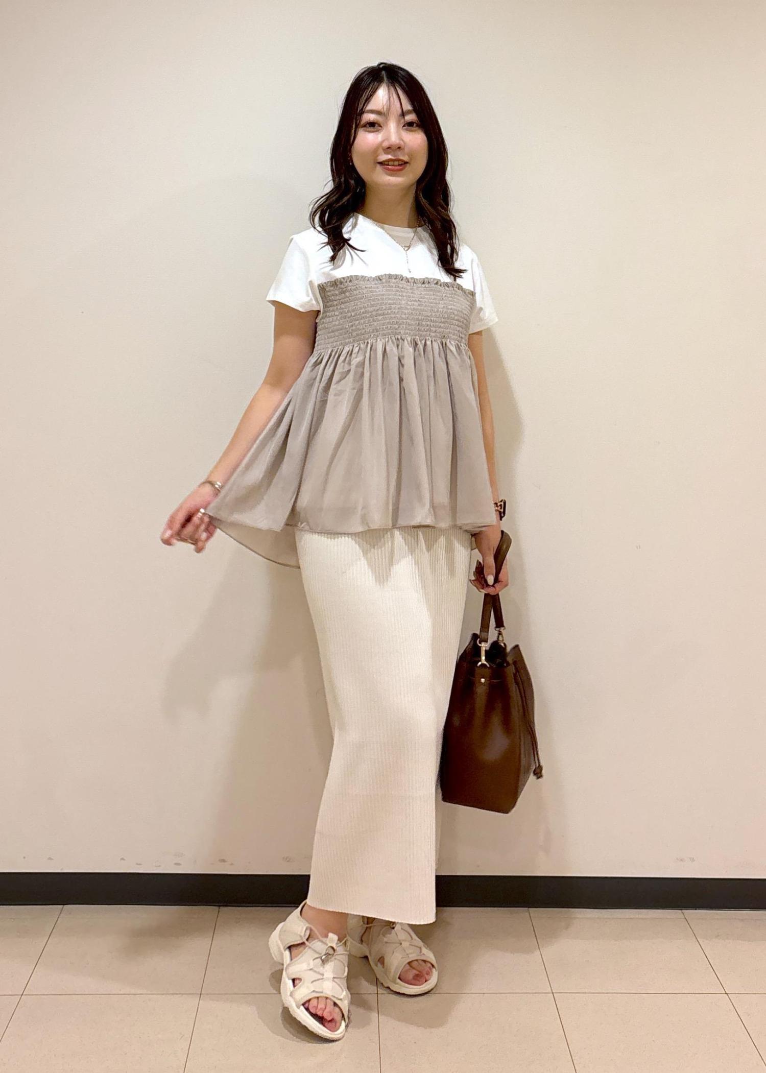 骨格ウェーブの気になる腰回りをトップスでカバーしました。