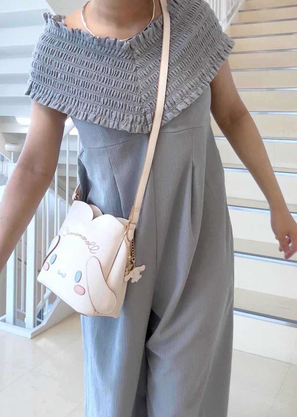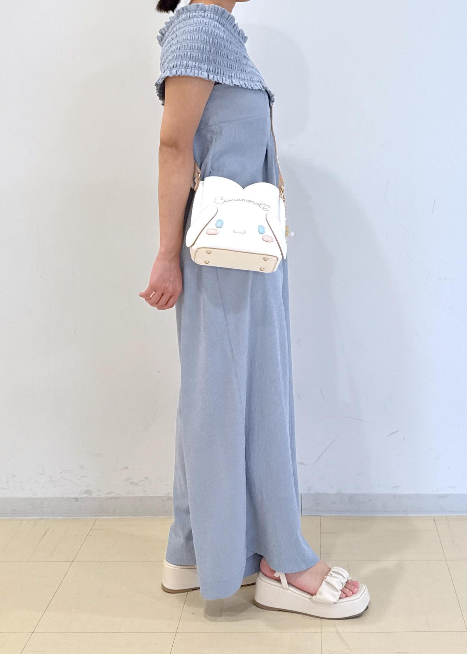 小物も全て白で統一し、シナモロールぽく柔らかいコーディネートにしました!