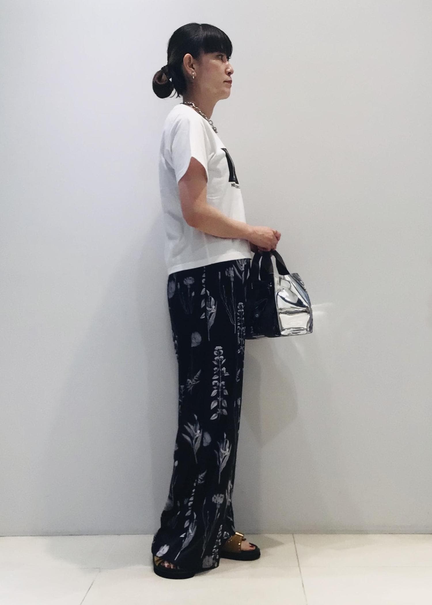 一目惚れしたイージーパンツにコンパクトTシャツでシンプルながらもきちんとおしゃれ感のあるスタイリングを組んでみました