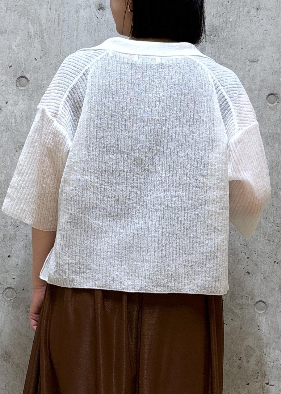 アウトレットROPÉ【洗える】シアークロップドポロニットホワイト / F¥9,900レビュー152cmでFサイズ着用