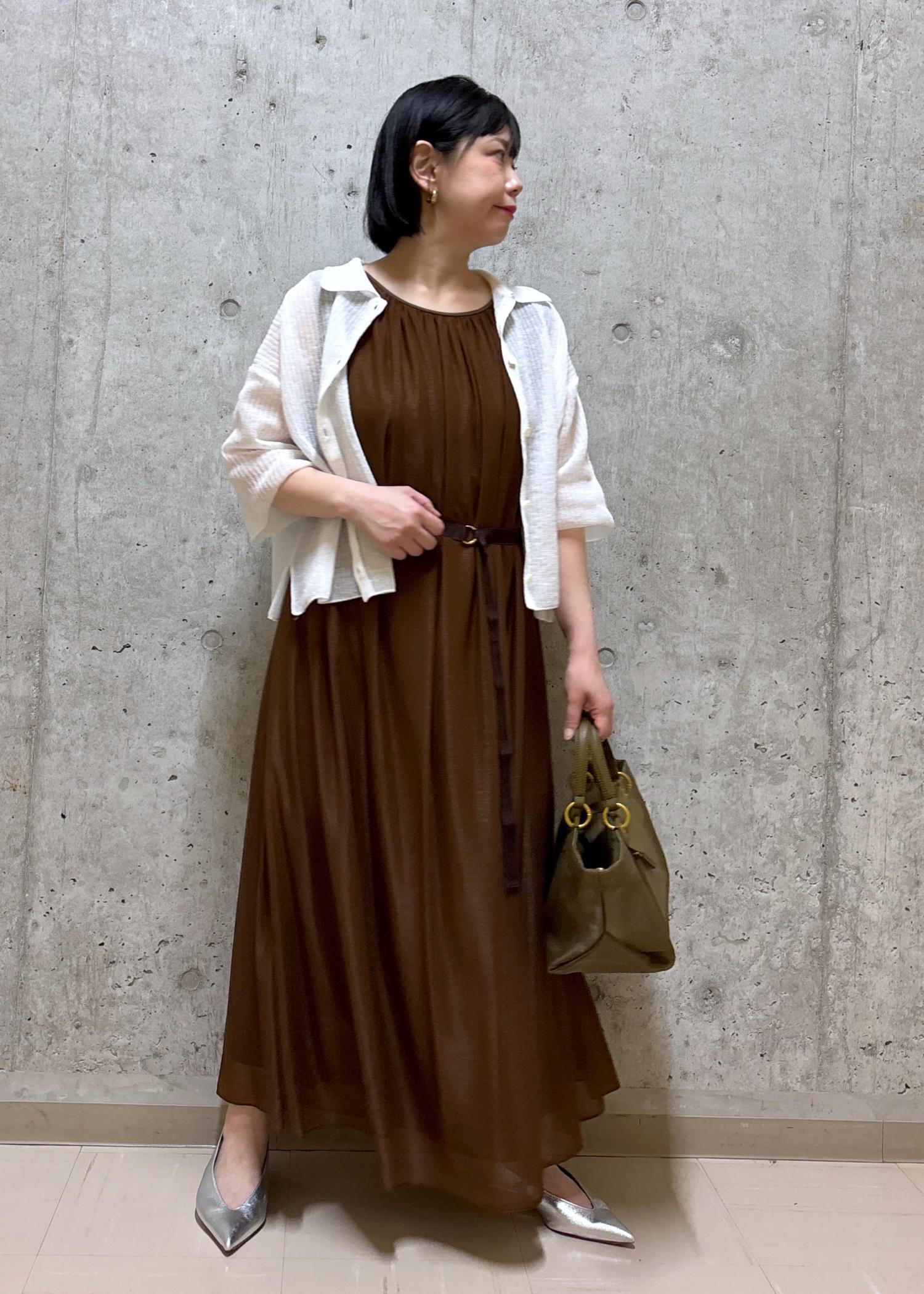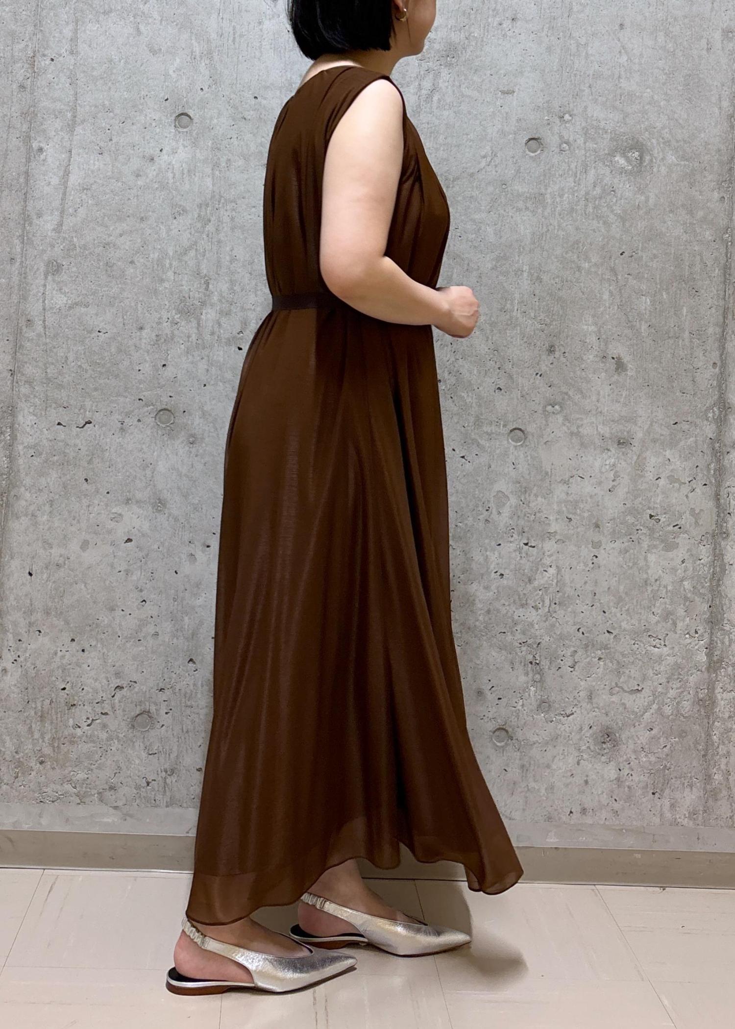 アウトレットROPÉ【洗える・新色追加】ブライトネスヤーンギャザーワンピースブラウン / 38¥17,820レビュー152cmで38サイズ着用