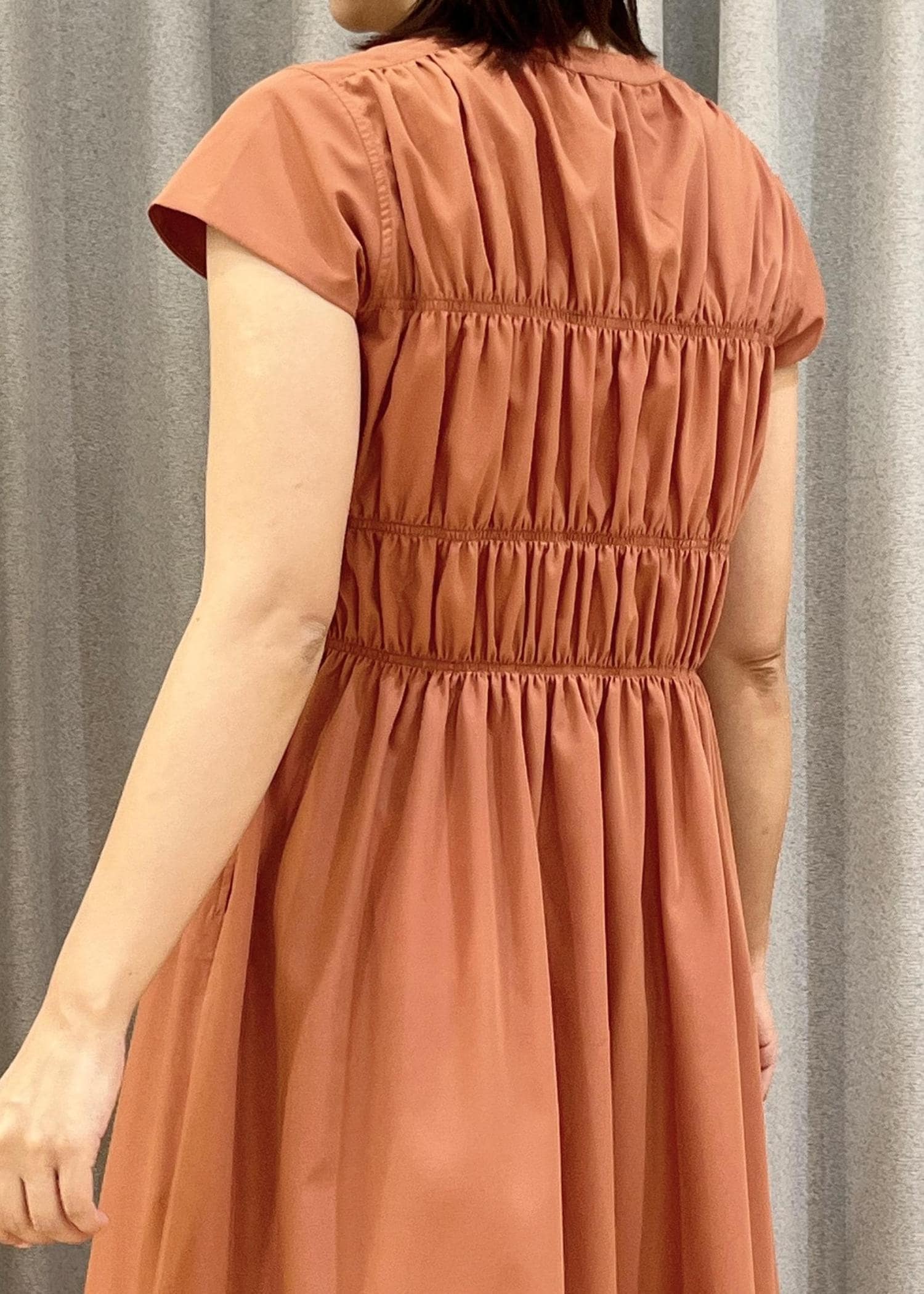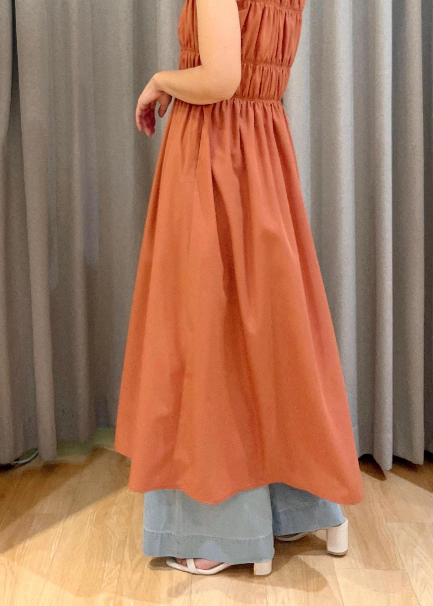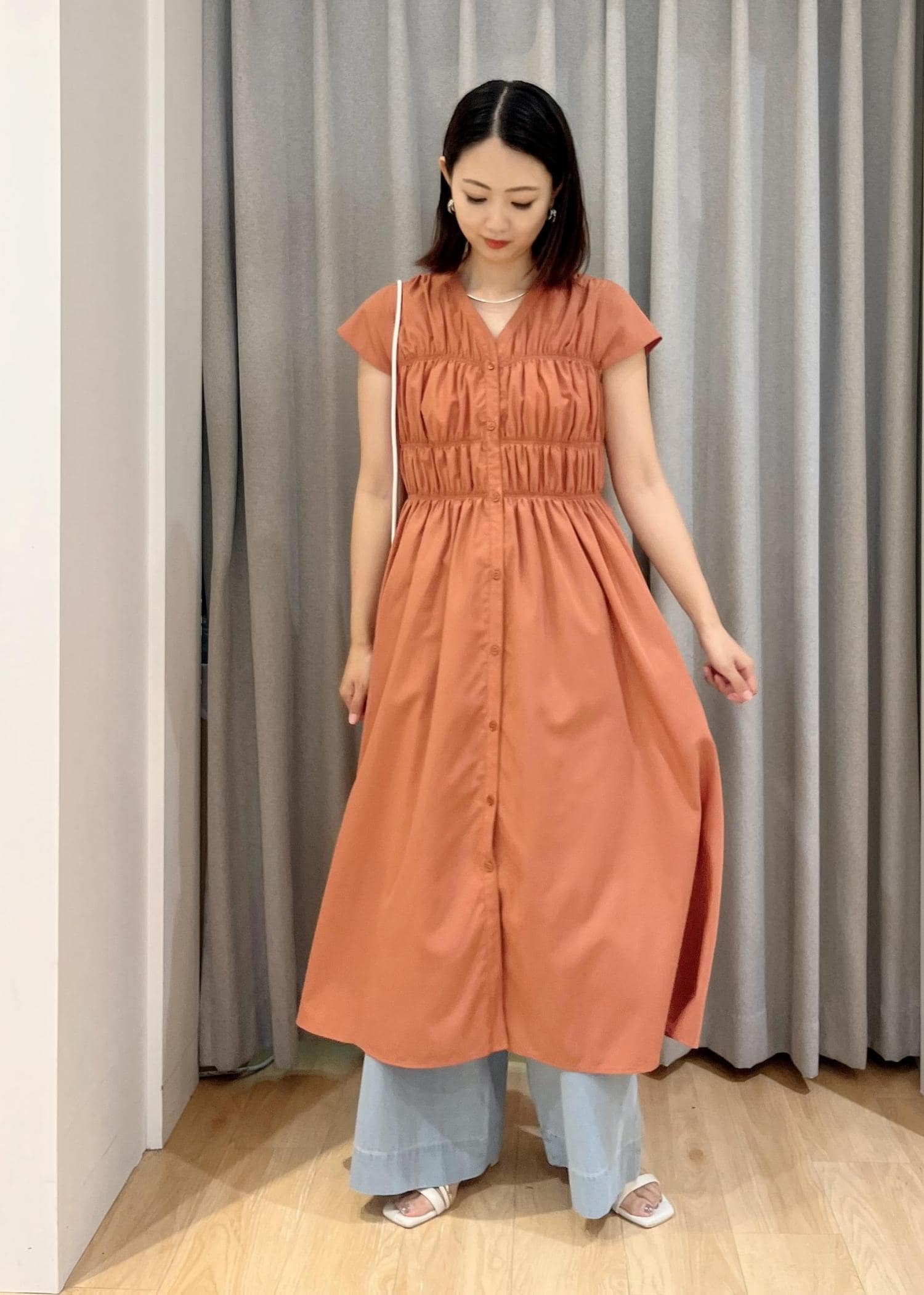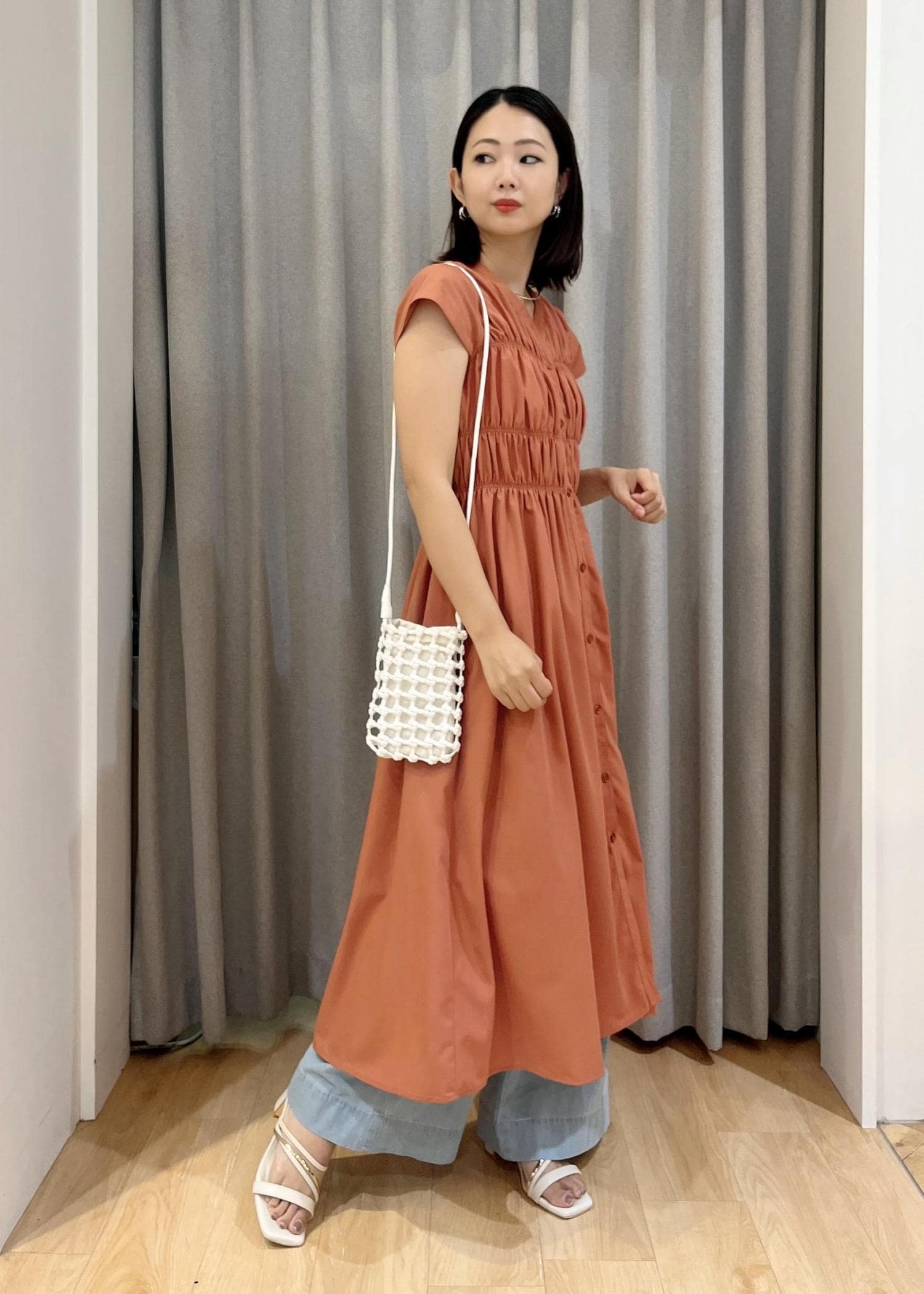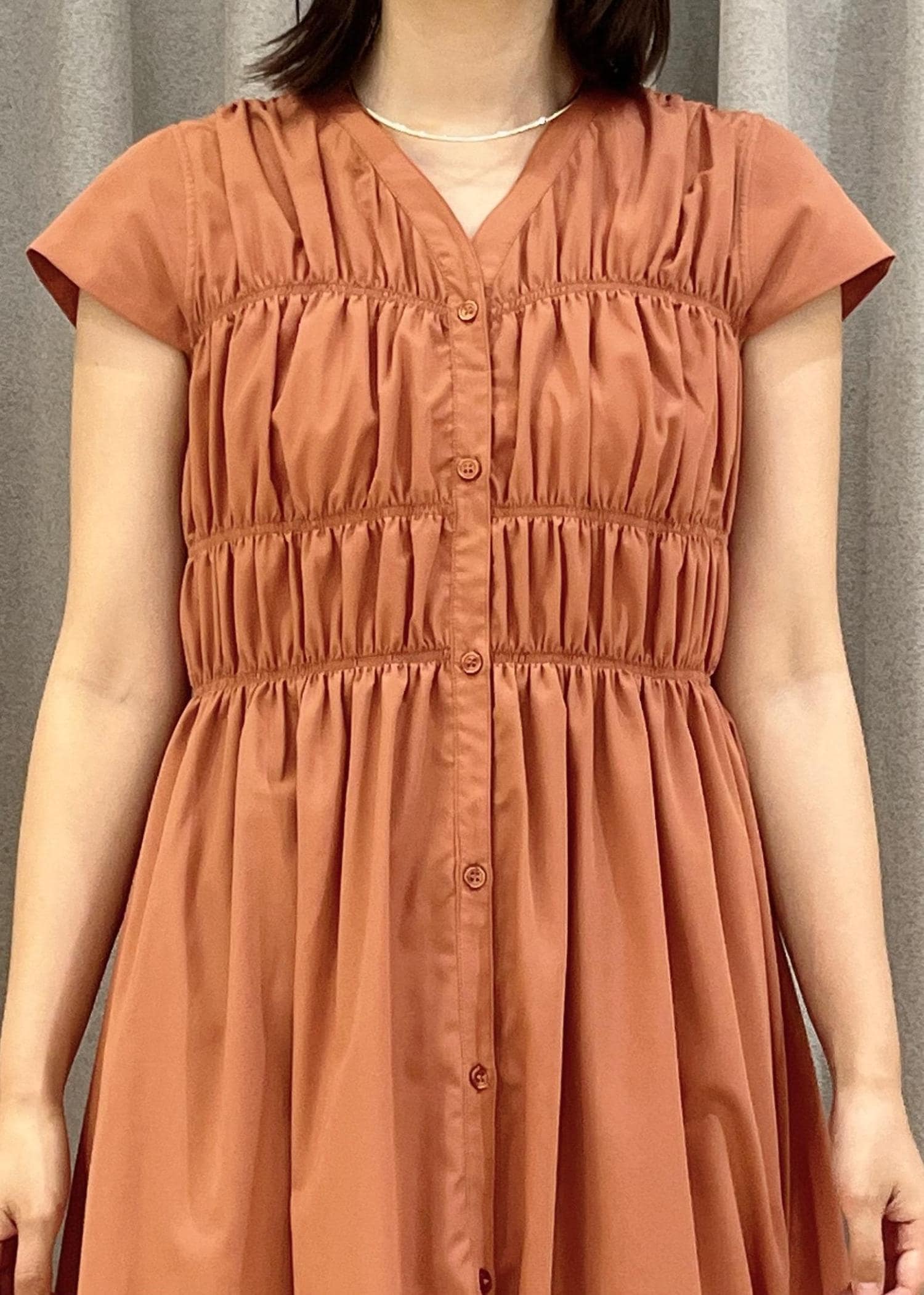 アウトレットVISシャーリングデザインワンピース【WEB限定サイズ】ダークブラウン系 / F¥3,955レビューシャーリング部分はゴム使用で窮屈感なく着用出来ます。体のラインも拾いすぎないので楽ちんです。足首より少し上の着丈です。