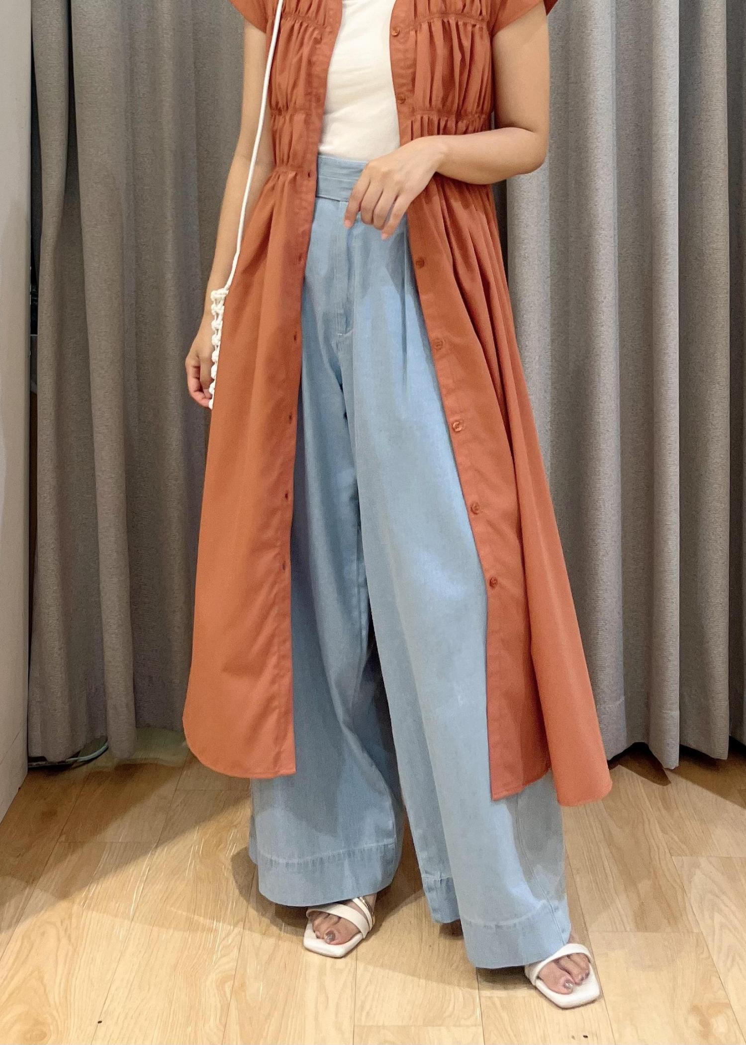 アウトレットVISタックデザインリラックスデニムパンツサックス / M¥3,460レビュー柔らかな素材で夏でも涼しく着用できます。Mサイズ着用で少しゆとりのあるサイズ感でした。