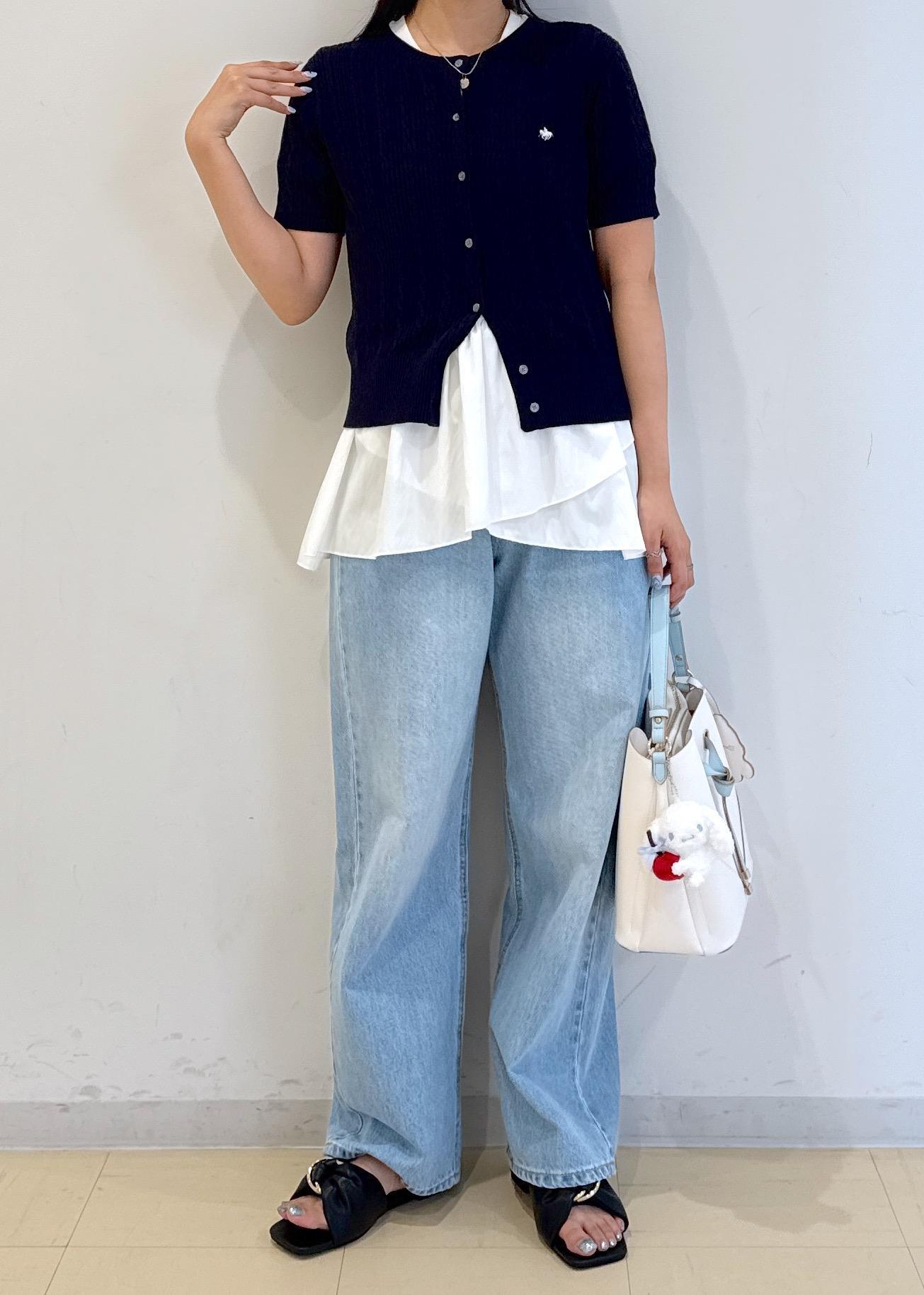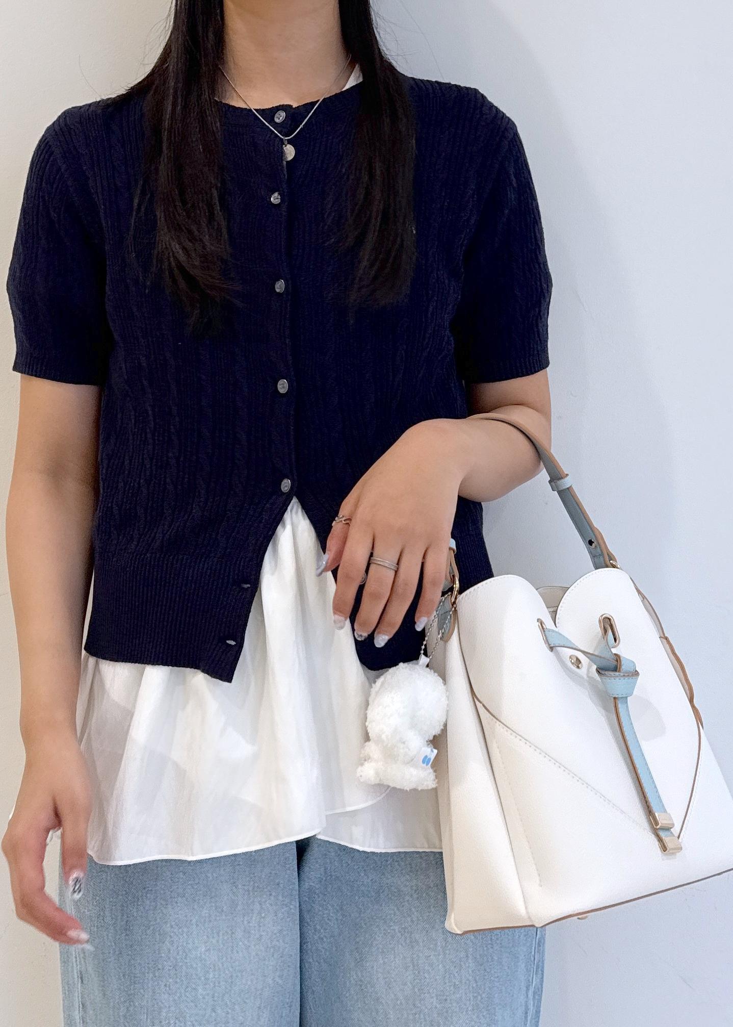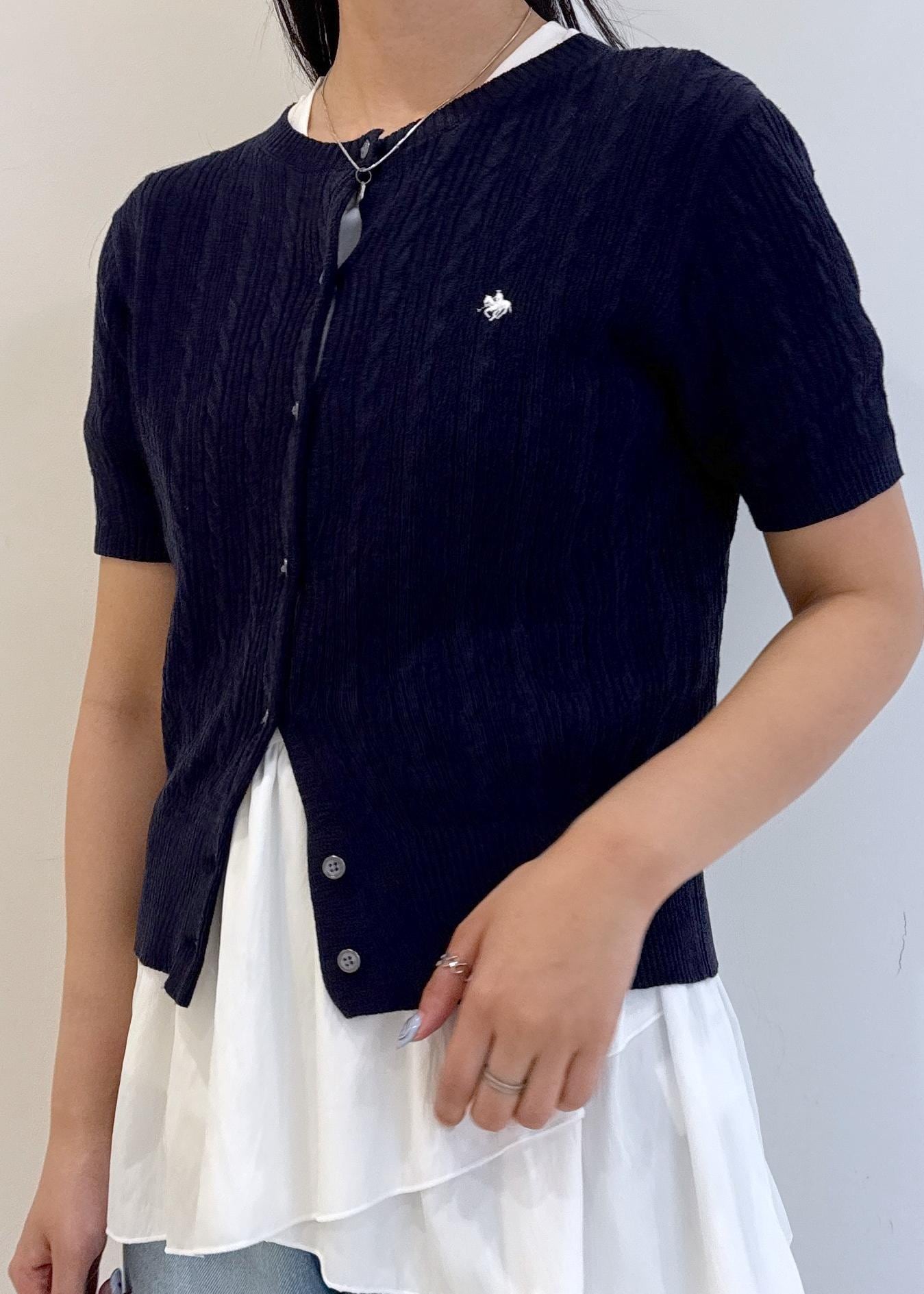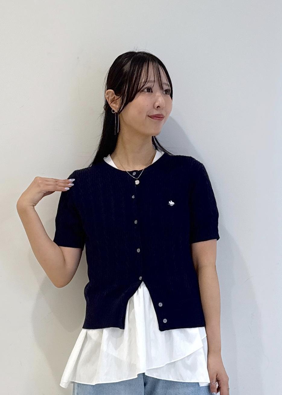VIS【POLO BCS】VIS別注ハーフスリーブミニケーブルカーディガンネイビー / F¥6,600レビュー丈が少し長めなので、シンプルすぎない韓国チックなコーデになります。カーディガンですが生地も薄く、ボタンを開けて抜け感を出すと、夏でも涼しく着れます♪